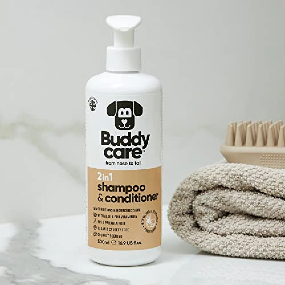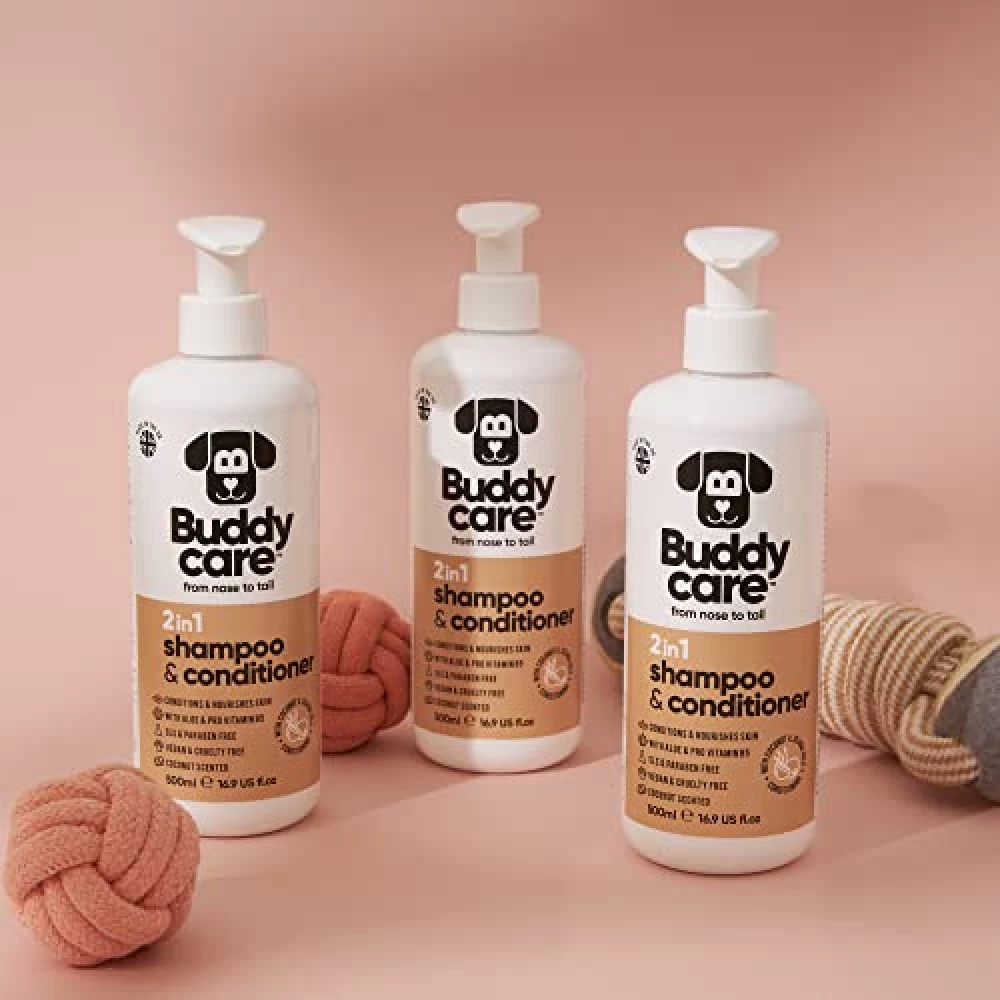 Wer behauptet, Baden sei nur was für Wasserratten, hat Buddycare 2-in-1 Hundeshampoo & Conditioner noch nicht erlebt. Mit jeder Anwendung verwandelst du das Badezimmer in ein duftendes Spa – und deinen Hund in eine samtige Knuddelwolke. Die Kombination aus sanfter Reinigung und intensiver Pflege sorgt dafür, dass dein Vierbeiner nicht nur sauber, sondern auch rundum verwöhnt wird. Der exotische Kokosduft bringt Urlaubsstimmung ins Fell, während Aloe Vera und Provitamin B5 kleine Wunder wirken: Das Fell wird weich, glänzend und so geschmeidig, dass selbst die Nachbarskatze neidisch schnurrt. Ob Kurzhaar, Langhaar, Locken oder Stoppel – Buddycare macht Schluss mit Badelaune-Blues und zaubert selbst aus dem wildesten Wuschel ein gepflegtes Prachtexemplar[2][5][7].