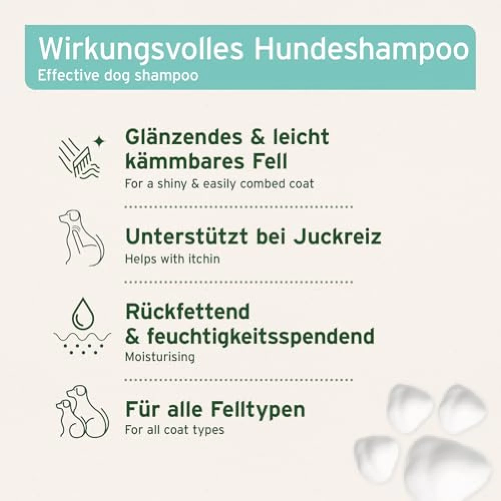 Dank der guten Schaumbildung reicht schon eine kleine Menge, um auch größere Hunde gründlich zu reinigen. Das schont nicht nur den Geldbeutel, sondern auch die Umwelt.