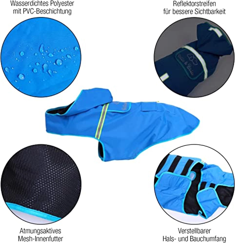 Absolut! Der Regenmantel ist so konzipiert, dass er die wichtigsten Körperteile deines Hundes trocken hält, ohne die natürlichen Bedürfnisse zu behindern. Der Schnitt lässt den Bauch- und Intimbereich frei, sodass dein Hund ungehindert sein Geschäft verrichten kann. Kein umständliches Ausziehen oder Hochhalten des Mantels nötig – dein Vierbeiner kann ganz normal markieren und seine Häufchen setzen, während Rücken und Seiten trocken bleiben. Ein durchdachtes Design, das den Alltag mit Hund nicht verkompliziert, sondern erleichtert!