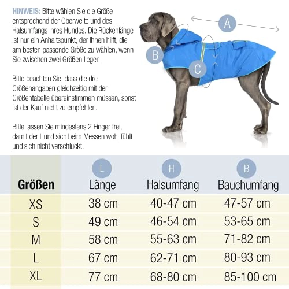 Für die richtige Größenwahl empfiehlt es sich, Rückenlänge und Brustumfang deines Hundes zu messen. Die Rückenlänge wird vom Nacken bis zum Schwanzansatz gemessen, der Brustumfang an der breitesten Stelle hinter den Vorderbeinen. Mit diesen beiden Maßen findest du sicher die passende Größe für deinen Vierbeiner. Bedenke dabei, dass ein zu enger Mantel einschränkt und unbequem ist, während ein zu weiter Mantel verrutschen und seinen Zweck verfehlen kann.