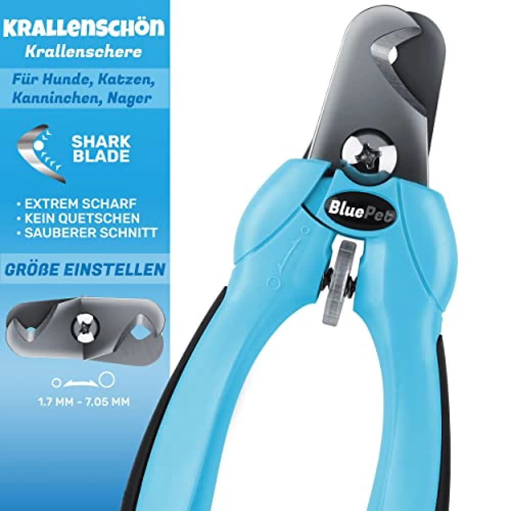 Krallen schneiden? Für viele Haustierbesitzer ein echter Nervenkitzel – für das Tier sowieso. Aber was wäre, wenn du den nervigen Gang zum Tierarzt durch einen kleinen Wohlfühlmoment zu Hause ersetzen könntest? Die BLUEPET Krallenschere macht genau das möglich. Mit ihren ultrascharfen Schneiden gleitet sie präzise durch selbst dicke Krallen wie durch Butter. Kein Ruckeln, kein Splittern – stattdessen ein leises „Klick“ und ein entspannter Vierbeiner, der sich lieber über ein Leckerli freut als über ein Skalpell. Besonders clever: Du kannst die Schnittöffnung individuell einstellen. Das macht die Anwendung nicht nur sicherer, sondern auch viel stressfreier – für Tier und Mensch.