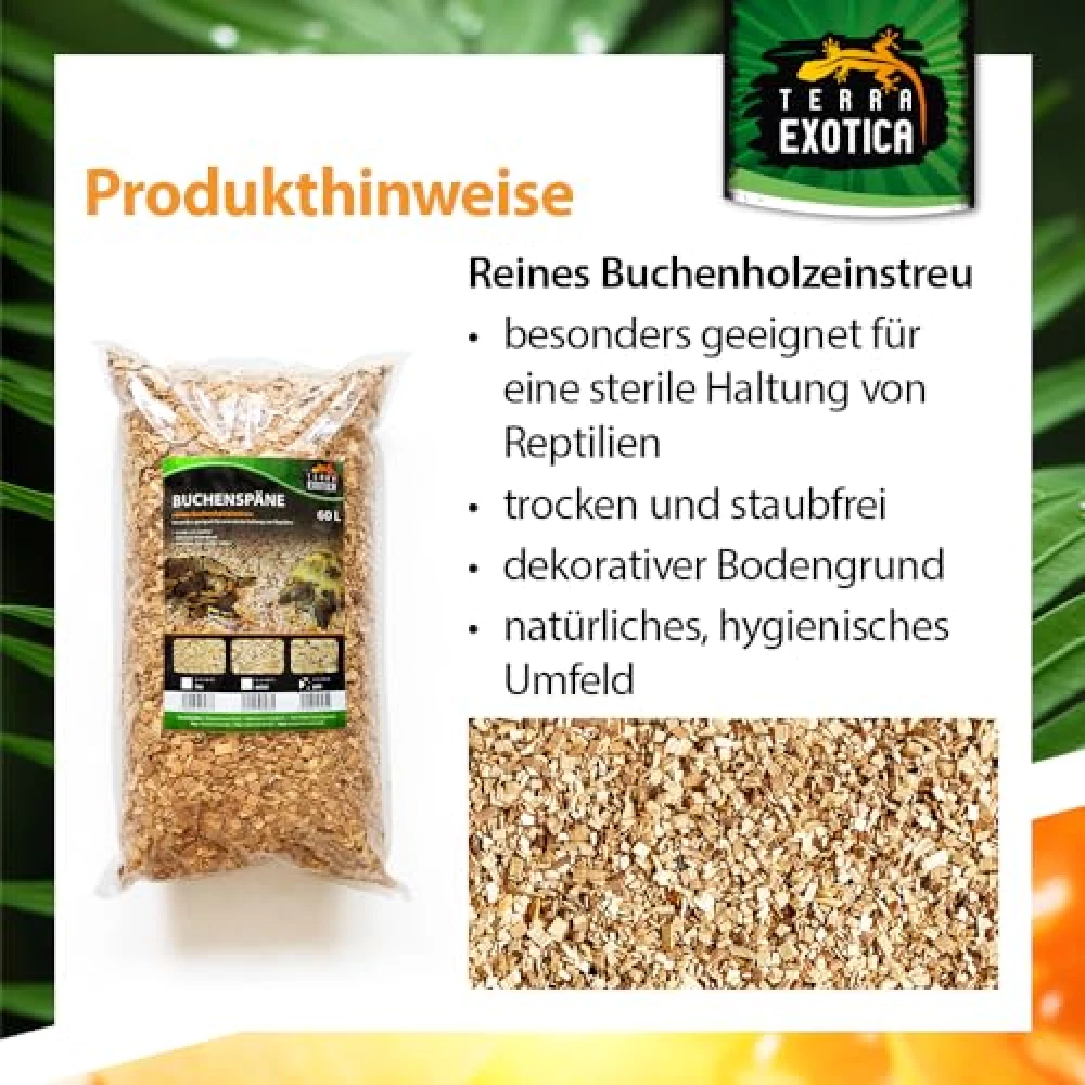 Du suchst nach einer Einstreu, die dein Terrarium in eine duftende Wohlfühloase verwandelt? Buchenspan bringt natürliche Frische, hält Gerüche im Zaum und sorgt für saubere Pfötchen – die perfekte Bühne für deine tierischen Stars.