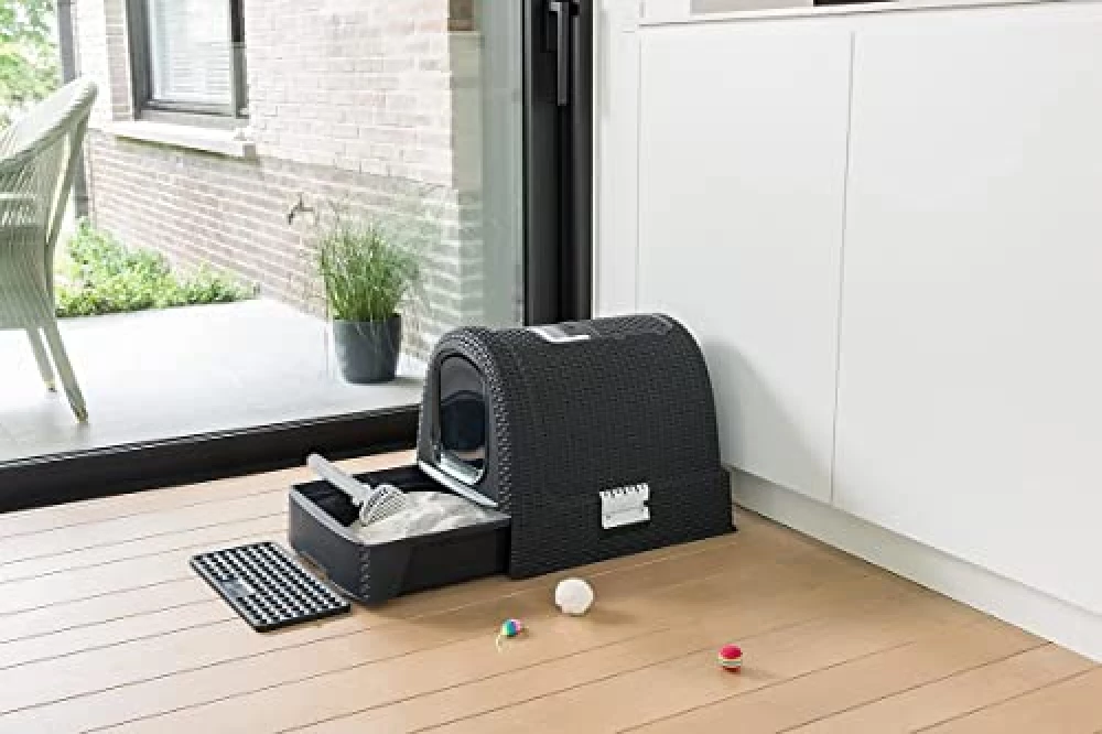 Wer sagt, dass Katzentoiletten immer wie graue Mäuse aussehen müssen? Dieses Modell in edlem Anthrazit macht auch im Wohnzimmer eine gute Figur. Die klaren Linien und das praktische Schubladensystem sorgen für einen modernen Look, der sich nicht verstecken muss. Und während du noch überlegst, ob du das Katzenklo oder das neue Sideboard schöner findest, genießt deine Katze den Komfort eines niedrigen Einstiegs – ideal für kleine Kätzchen, Senioren oder einfach für alle, die es bequem mögen. Komfort und Design? Hier gehen sie Hand in Pfote.