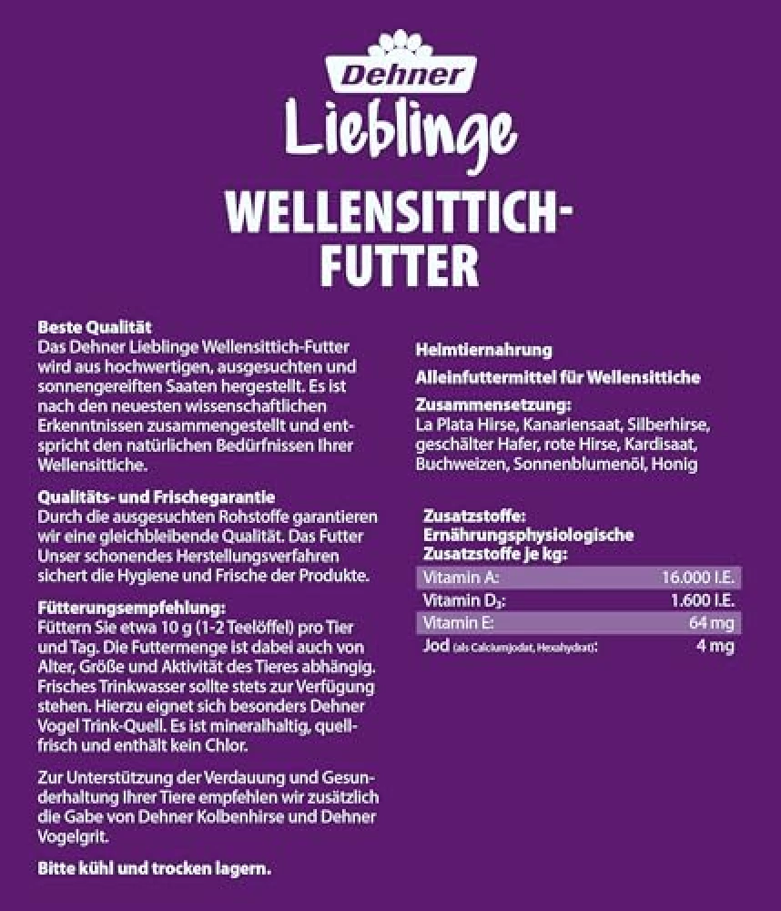 Willkommen in der Gourmetwelt deiner gefiederten Mitbewohner! Dieses Alleinfuttermittel ist mehr als nur ein Haufen Körner. Es ist eine täglich verfügbare Einladung zur Schnabelgaudi. Und zwar nicht irgendeine, sondern eine mit besten Hirsesorten, geschältem Hafer, Kardisaat, Buchweizen, einem Hauch Honig und einem Tropfen Sonnenblumenöl. Klingt lecker? Finden auch deine Wellis.