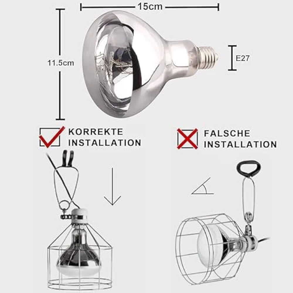 Am liebsten hängt die DERNORD UVA UVB Glühbirne gerade nach unten in einer vertikalen Halterung. So bleibt sie cool, läuft länger und deine Tiere bekommen gleichmäßig Licht und Wärme ab. Bitte vorher die Größe der Fassung checken, damit alles passt.[7]
