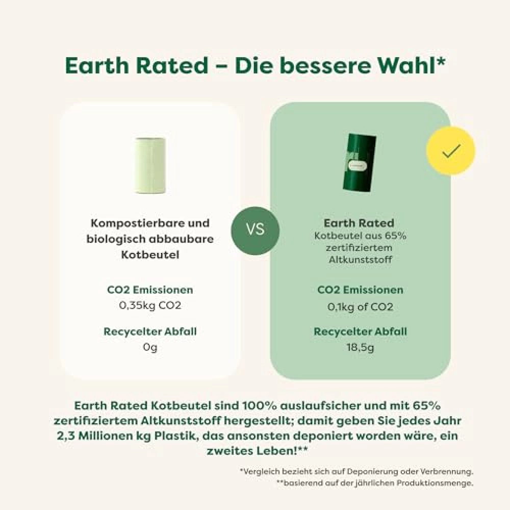 Sicherheit geht vor – vor allem, wenn es um Hygiene geht. Die Earth Rated Beutel sind dick genug, um auch bei abenteuerlustigen Hunden dicht zu halten. Sie reißen nicht, auch wenn es mal hektisch wird, und schützen deine Hände zuverlässig. Aber das Beste: Mit jedem Kauf unterstützt du Projekte, die wirklich zählen. Über 13 Millionen gespendete Beutel und Partnerschaften mit Organisationen, die sich für Tiere und Umwelt einsetzen, zeigen, dass Verantwortung hier nicht nur ein Wort ist. So kannst du mit gutem Gewissen Gassi gehen – und vielleicht sogar ein bisschen stolz darauf sein, Teil dieser Bewegung zu sein.