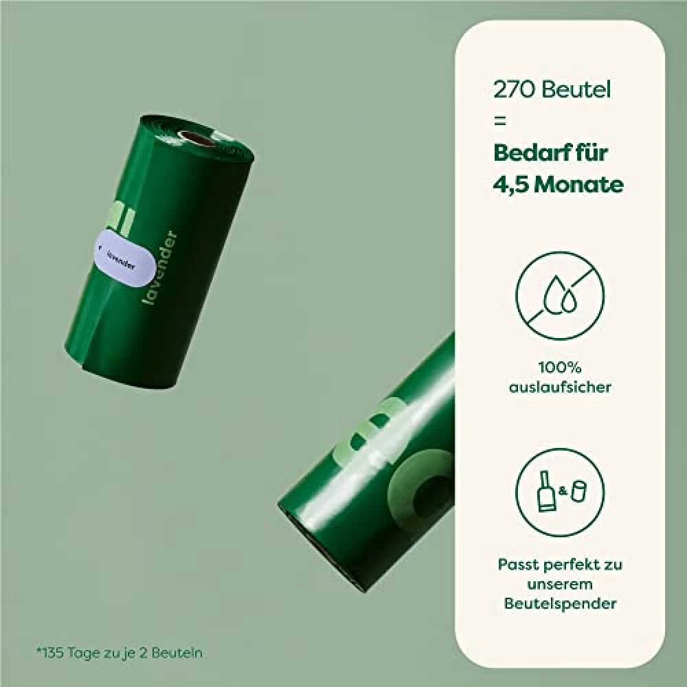 In einer Packung stecken 270 Beutel, verteilt auf 18 Nachfüllrollen. Damit bist du für viele Spaziergänge bestens ausgerüstet – und musst nicht ständig nachkaufen.