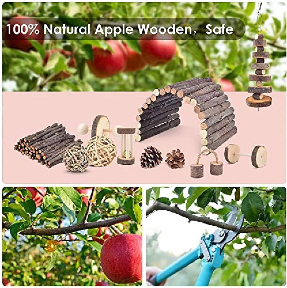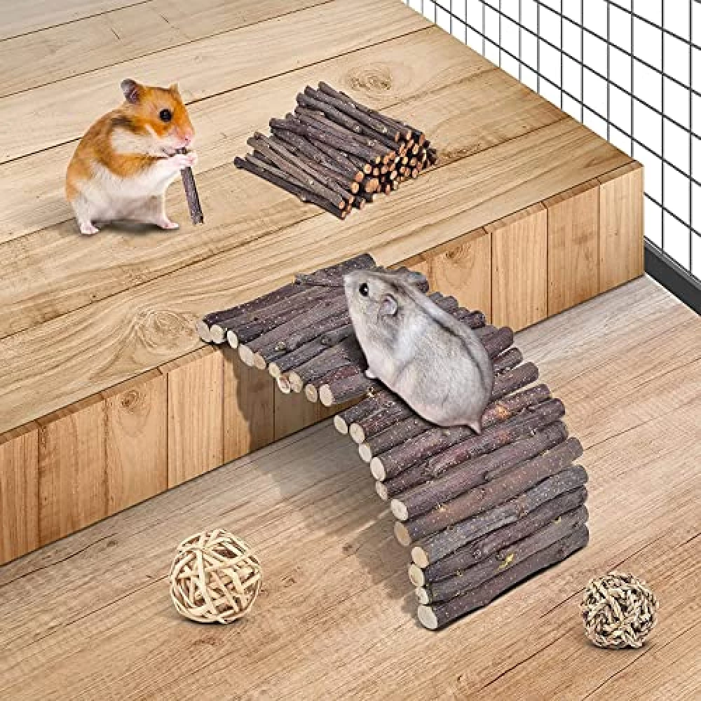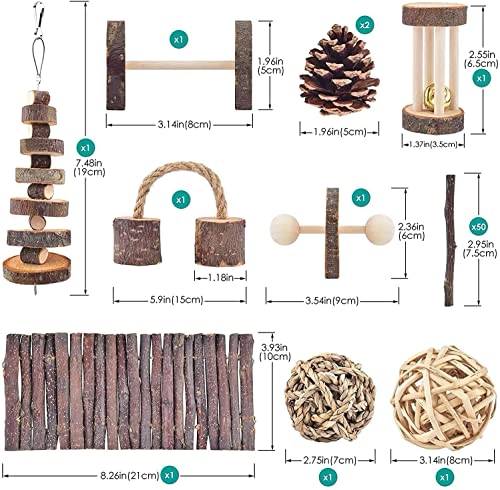 Hier kommt nur das Beste in den Käfig: Die Kauspielzeuge bestehen aus reinem Naturholz, frei von Chemie und dubiosen Zusätzen. Dein kleiner Mitbewohner kann also nach Herzenslust nagen, ohne dass du dir Sorgen machen musst. Die Holzstücke sind nicht nur robust, sondern auch so gestaltet, dass sie neugierige Näschen und flinke Pfötchen magisch anziehen. Und falls du dich fragst, wie du das Spielzeug im Käfig befestigst: Ein stabiler Metallhaken sorgt dafür, dass alles dort bleibt, wo es hingehört – selbst wenn dein Hamster mal wieder seine akrobatische Ader entdeckt. Die Installation ist kinderleicht, der Spaß dafür umso größer.