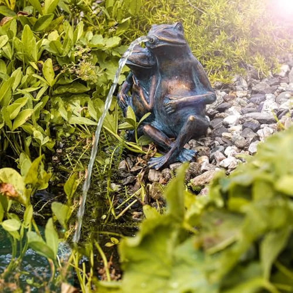 Zwei fröhliche Frösche, die deinen Teich zum Leben erwecken: Das Froschpaar als Wasserspeier sorgt für spritzige Momente und bringt mit einem Augenzwinkern frischen Wind in jede Gartenoase. Wer braucht da noch Gartenzwerge?