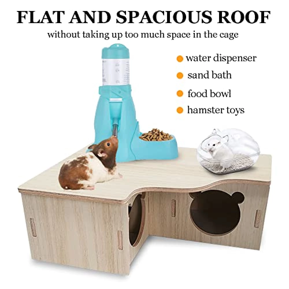 Das Haus ist kompakt genug, um in die meisten Standardkäfige zu passen, bietet aber mit drei Kammern und einem großzügigen Dach trotzdem jede Menge Platz für kleine Abenteuer. Miss deinen Käfig vorher aus – Hamster mögen es geräumig, aber nicht übertrieben protzig.