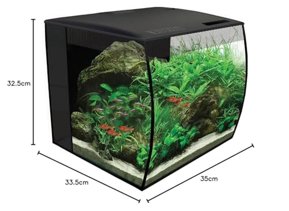 Die 34 Liter Fassungsvermögen sind wie gemacht für kleine Unterwasserabenteuer und bieten genug Platz für deine liebsten Aquarienbewohner. Die gebogene Front sorgt dabei nicht nur für einen schicken Look, sondern auch für eine Panoramaansicht, bei der du garantiert jedes Schuppenkleid und jede Pflanzenranke bewundern kannst.