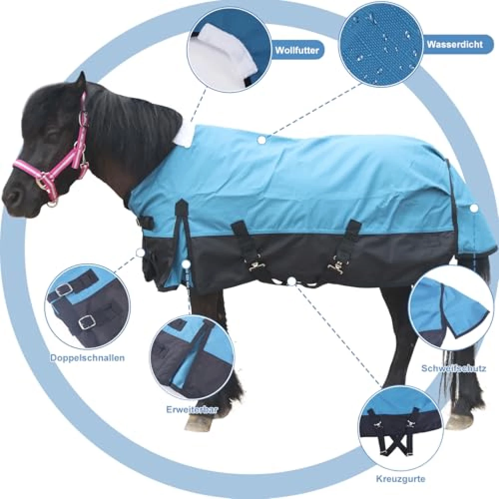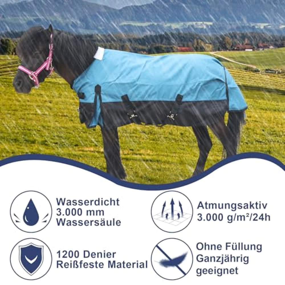 Keine Sorge: Die Decke ist so konstruiert, dass sie Nässe abweist und dabei die Körperwärme reguliert. Perfekt für wechselhaftes Wetter – und Ponys, die selbst kleine Heizkraftwerke sind.