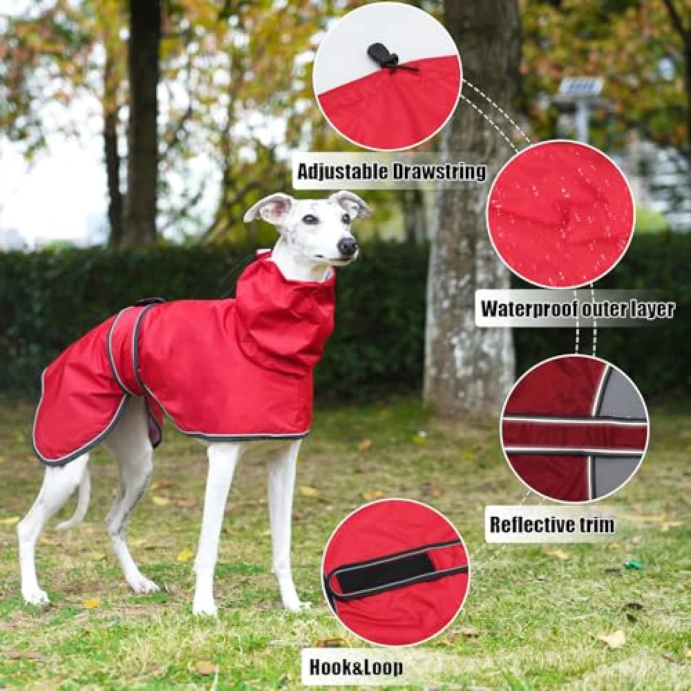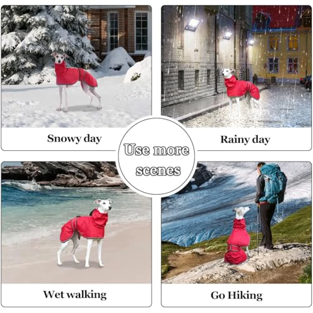 Wenn der Himmel seine Schleusen öffnet, muss dein Windhund nicht nass werden. Der Regenmantel schmiegt sich wie eine zweite Haut an Greyhounds, Lurcher und Whippets, hält sie trocken und sorgt dank cleverem Thermofutter für Wohlfühlklima – so macht sogar Regen Spaß.