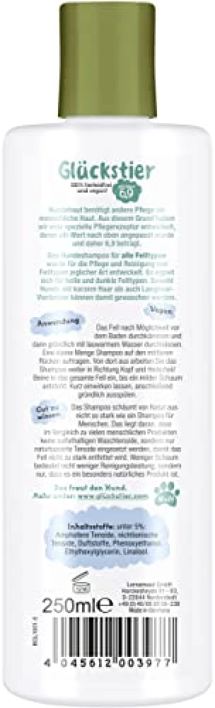 Das Glückstier Hundeshampoo ist ein echter Glücksgriff für alle, die Wert auf ethische Pflege legen. Hier kommt garantiert kein Tier zu Schaden: 100 % tierleidfrei, vegan und frei von allem, was in Hundeshampoo nichts zu suchen hat – PEGs, Silikone, Mineralöl, Paraffine und künstliche Farbstoffe bleiben draußen. Auch bei der Entwicklung wird auf tierische Testpersonen verzichtet. So kannst du mit gutem Gefühl shampoonieren und weißt: Dein Hund bekommt nur das Beste, ohne dass ein anderes Tier dafür leiden musste. Für alle, die lieber in Kuscheleinheiten als in Chemiebaukasten investieren.