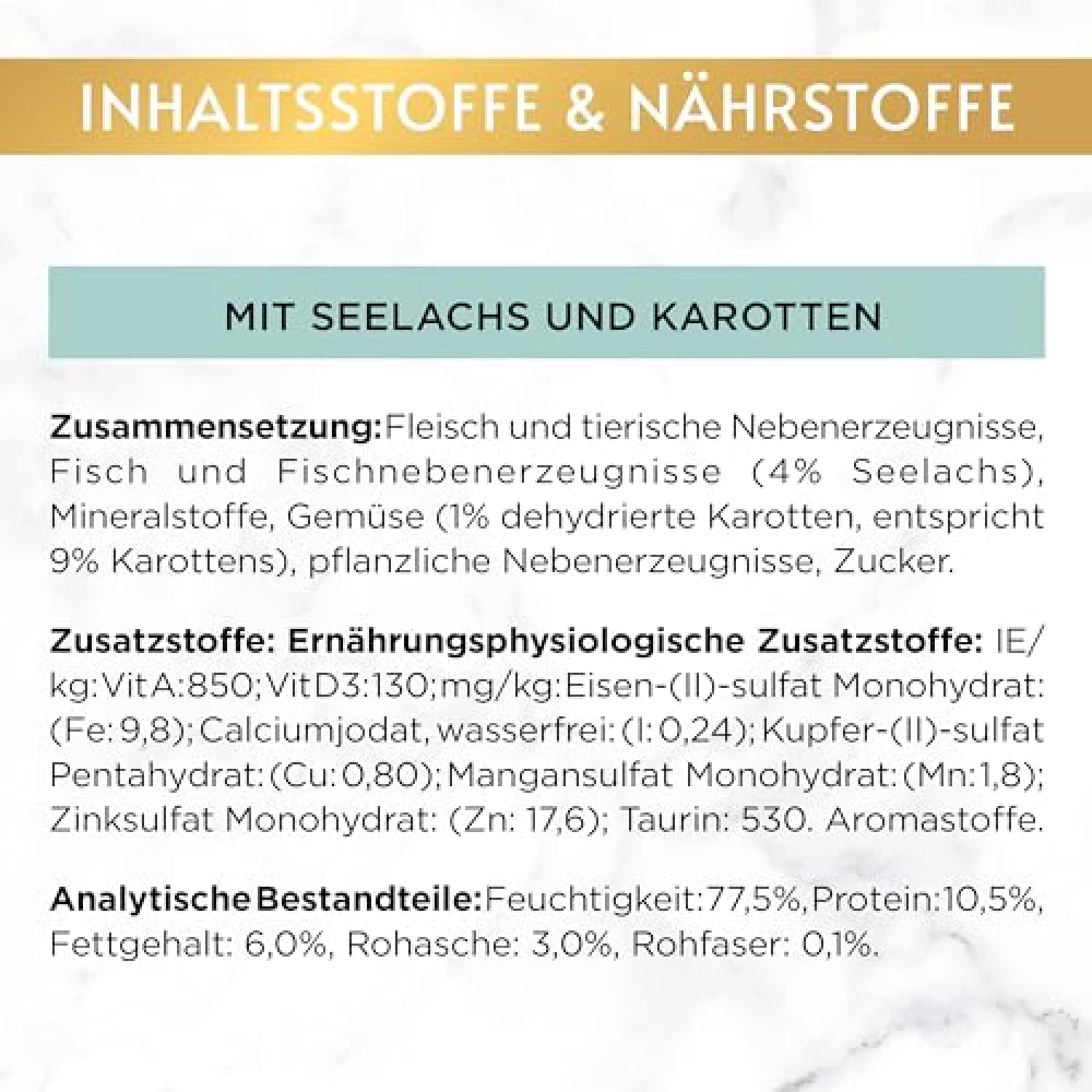 Diese Pastete ist keine gewöhnliche Dosenmahlzeit. Sie ist eine Einladung an alle samtpfotigen Soßen-Junkies, sich ordentlich sattzuschlecken. Die dezente Karottennote rundet den Fischgeschmack ab und bringt Abwechslung in den Napf – ohne dass deine Katze sich mit Brokkoliröschen herumschlagen muss. Ob sie Karotten bewusst genießt, sei dahingestellt. Aber dass sie am Ende zufrieden auf dem Sofa liegt, spricht für sich. Auch für Mehrkatzenhaushalte ist das 12er Pack ein echtes Argument: Kein Futterneid, sondern Frieden im Fellrudel.