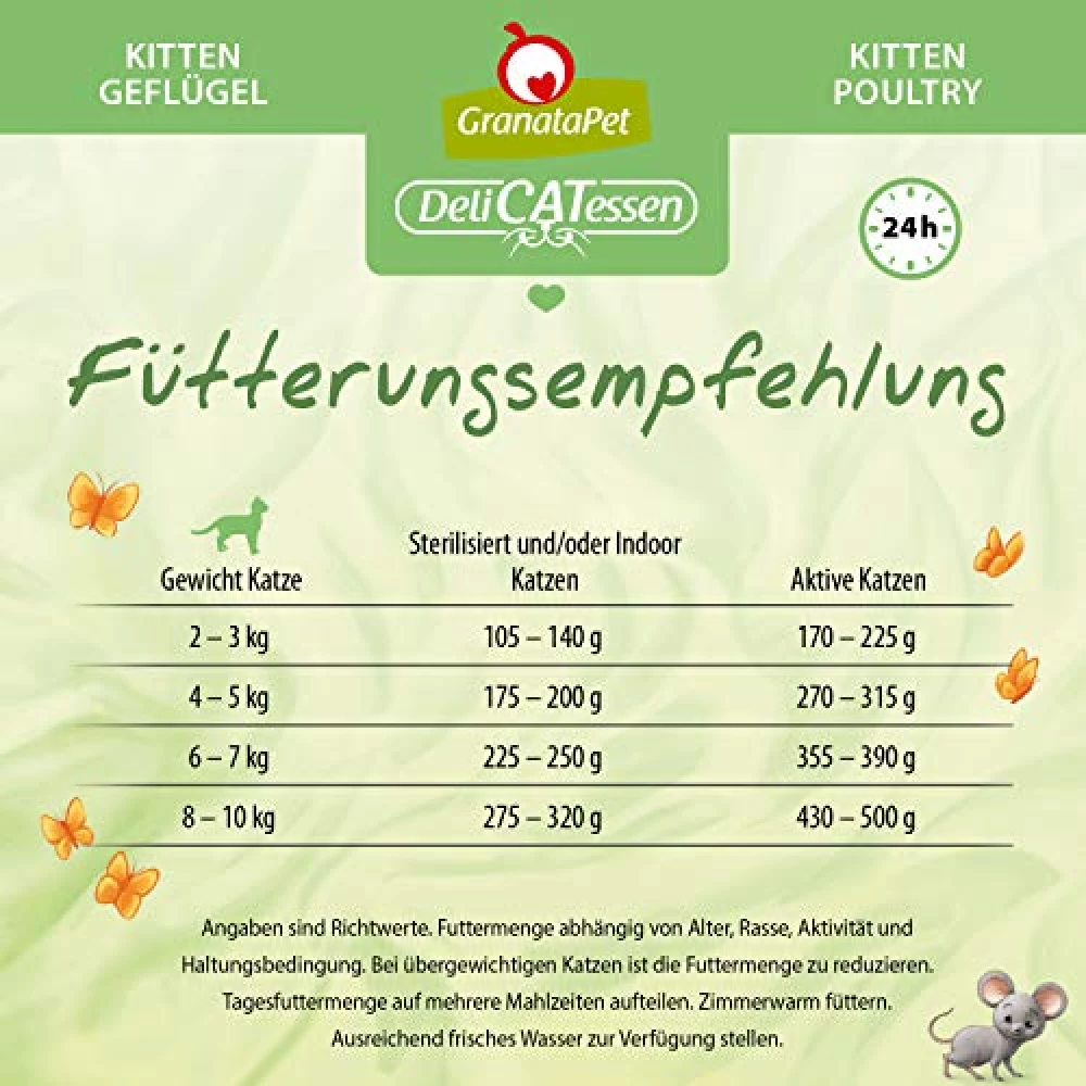 Stell dir vor, dein kleiner Tiger könnte sich in der Natur selbst bedienen. Genau das bietet dir das DeliCatessen Kitten Geflügel: eine naturnahe Ernährung, die ganz ohne Getreide, Zuckerzusätze und künstliche Farb- und Aromastoffe auskommt. Die hochwertigen Zutaten stammen aus kontrollierter Herkunft und sorgen dafür, dass deine Katze das Beste vom Besten bekommt. Egal ob in einem Mehrkatzenhaushalt oder als Einzelprinzessin – dieses Futter ist für jede Samtpfote geeignet und lässt keine Wünsche offen.