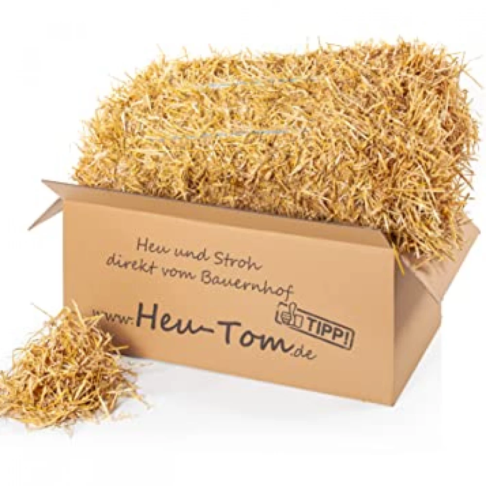 Das Stroh kommt in einem umweltfreundlichen Pappkarton ohne Plastik – so bleibt die Natur auch beim Futter geschützt!