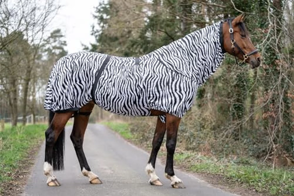 Keine Sorge, das ist kein modischer Gag. Studien haben gezeigt, dass das Zebra-Muster Insekten verwirrt. Für Fliegen & Co. wirkt das Streifenmuster wie ein optischer Irrgarten – und dein Pferd bleibt außen vor.