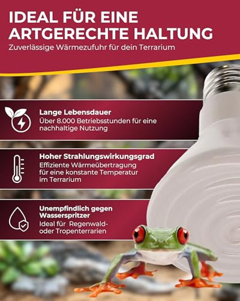 Stell dir vor, du liegst im Dunkeln und plötzlich geht das Licht an – nicht gerade förderlich für süße Träume, oder? Genau das bleibt deinen Terrarienbewohnern mit diesem Infrarotstrahler erspart. Er liefert pure Wärme, aber kein sichtbares Licht. Das bedeutet: Nachtruhe bleibt Nachtruhe, und du kannst deine Tiere sogar nachts beobachten, ohne sie aus dem Schlaf zu reißen. Perfekt für nachtaktive Arten oder einfach für alle, die es gerne gemütlich haben. So bleibt das Terrarium ein Ort der Erholung – für Tier und Halter gleichermaßen[1][2][5].