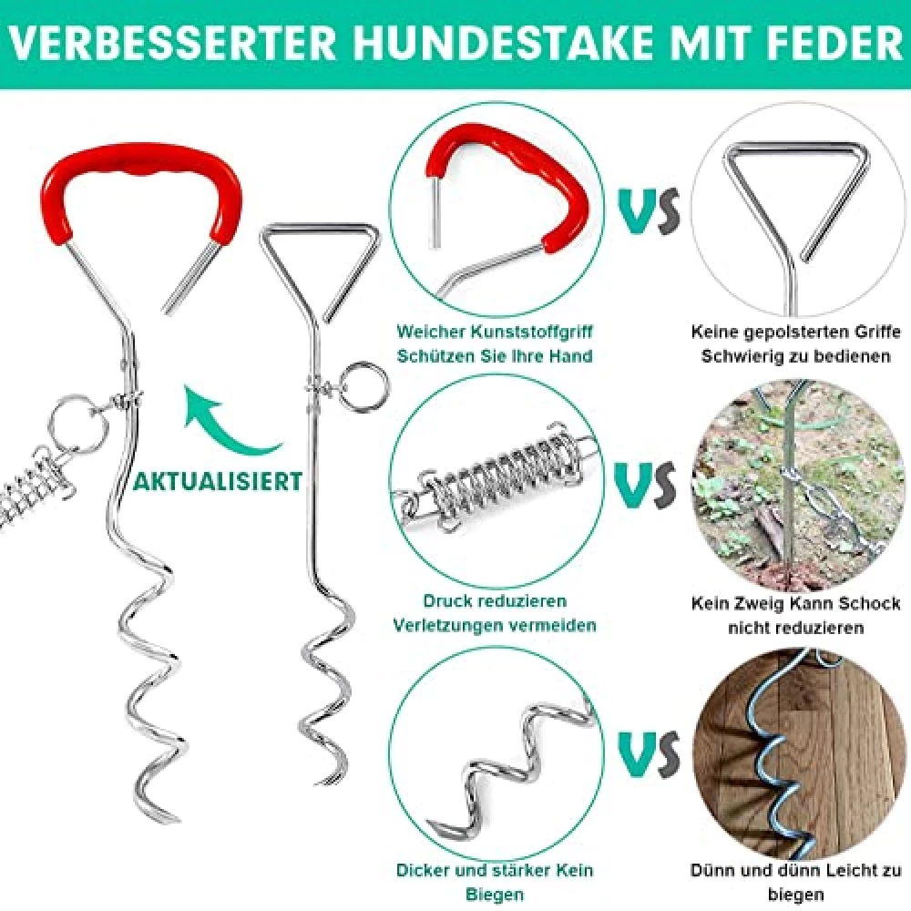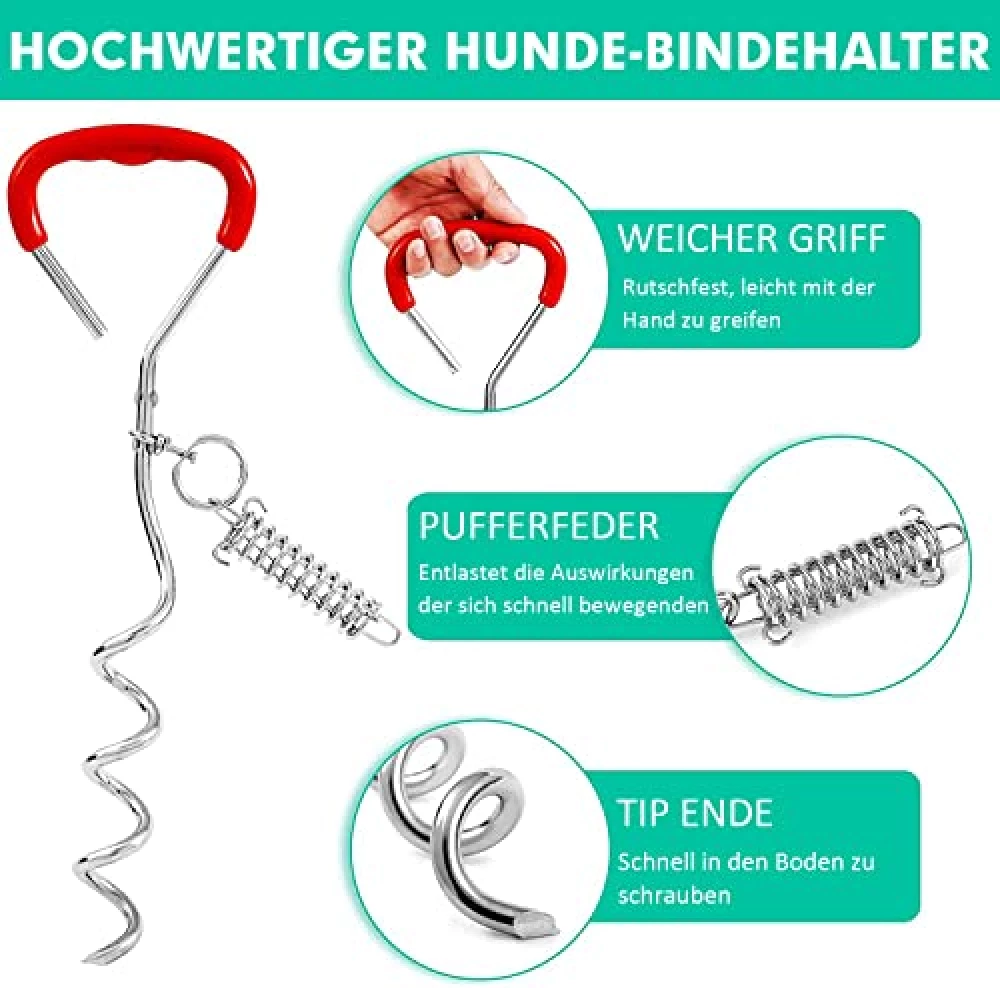 Freiheit für deinen Hund, Gelassenheit für dich: Der Hundebindepfahl mit stoßdämpfender Feder sorgt für sichere Abenteuer im Garten, am Strand oder auf Reisen – ohne Verheddern, ohne Sorgen, aber mit jeder Menge Spaß.