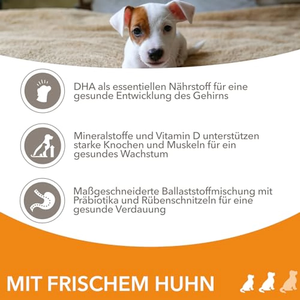 Gib deinem Welpen den besten Start ins Leben! Mit 85% tierischem Protein, wichtigen Vitaminen und einer speziellen Rezeptur wird dein kleiner Freund stark, gesund und fröhlich. Entdecke den Unterschied!
