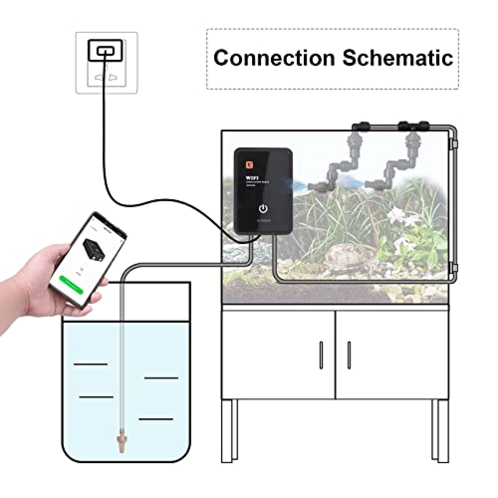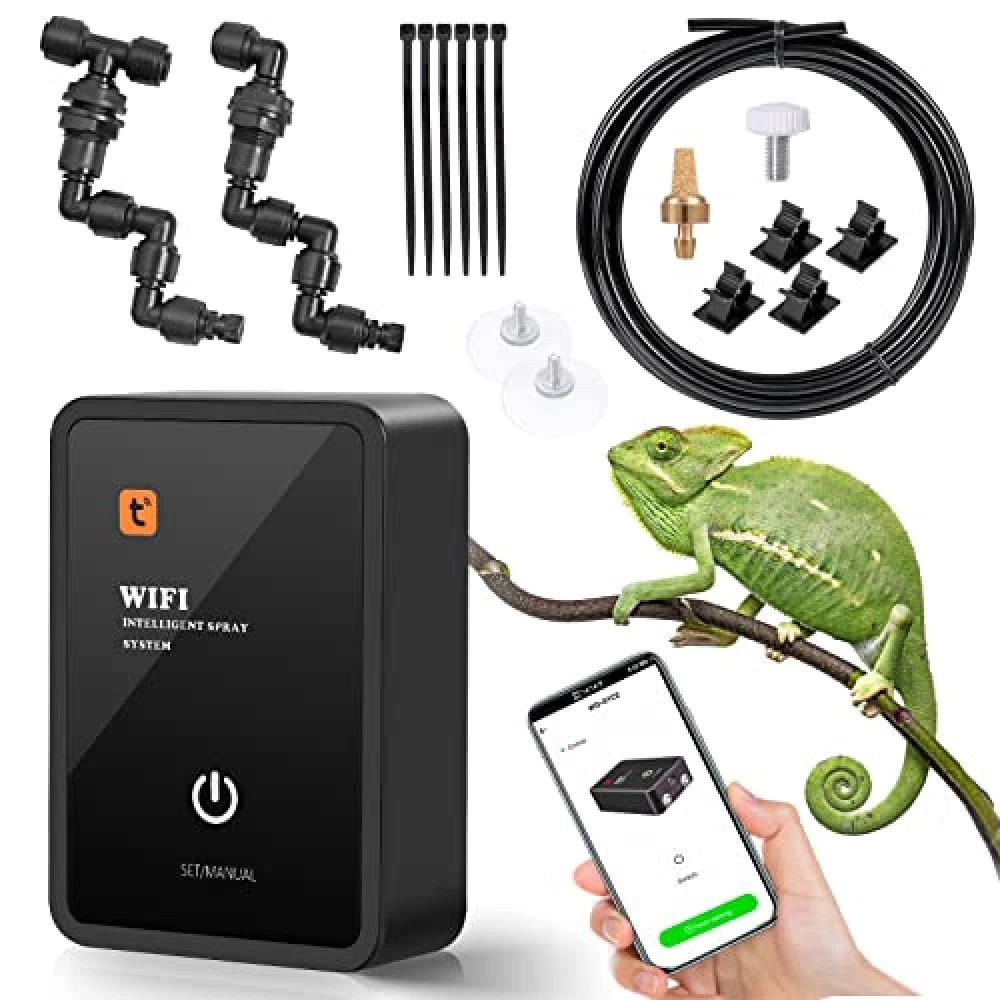 Magische Nebelschwaden im Terrarium, perfekt dosiert und stets auf Abruf – ganz ohne Fummelei mit Mini-Tanks. Tauche ein in eine Welt, in der dein Reptil sich fühlt wie im Regenwald und du alles per Fingertipp im Griff hast. Bereit, das Klima zu revolutionieren?
