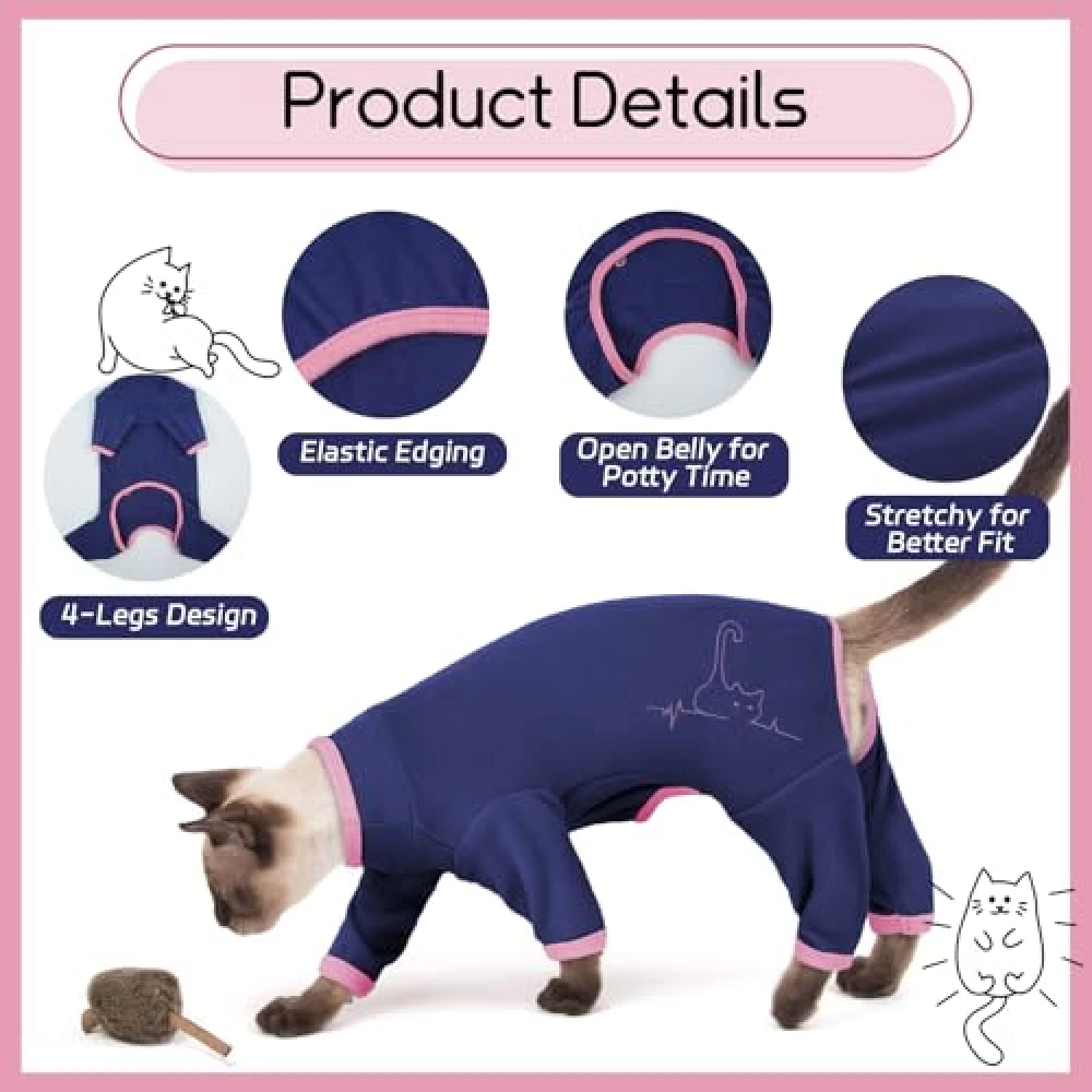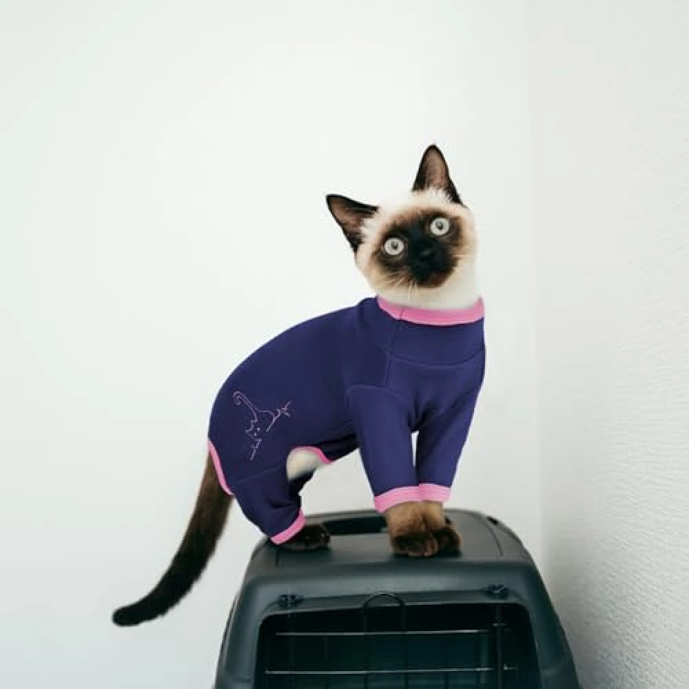 Wer sagt, dass Funktion nicht schick sein kann? Das klassische, schlichte Design des Katzen-Onesies macht ihn zum perfekten Begleiter – ob als Schlafanzug, für das nächste Katzen-Fotoshooting oder als Partykostüm. Und falls deine Katze mal eine kleine Wunde abdecken muss, ist der Onesie zur Stelle (nur nicht nach einer OP am Bauch, da ist er lieber Zuschauer).