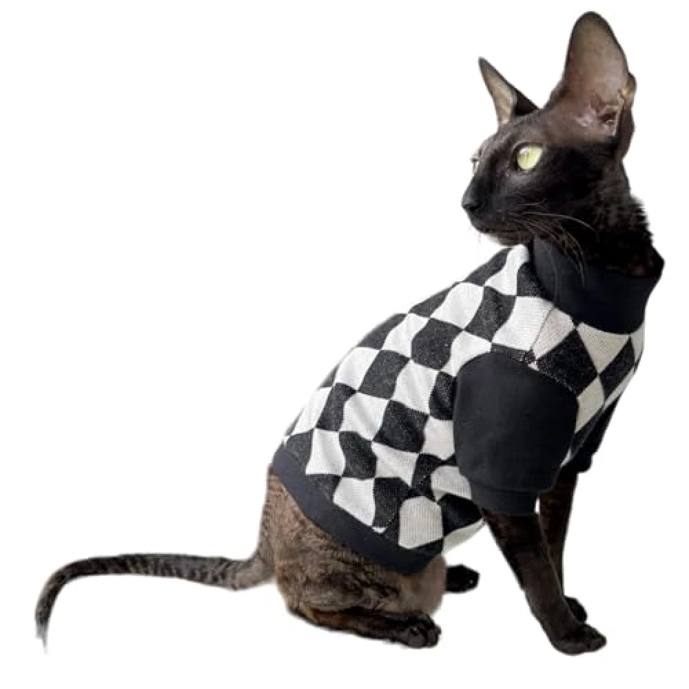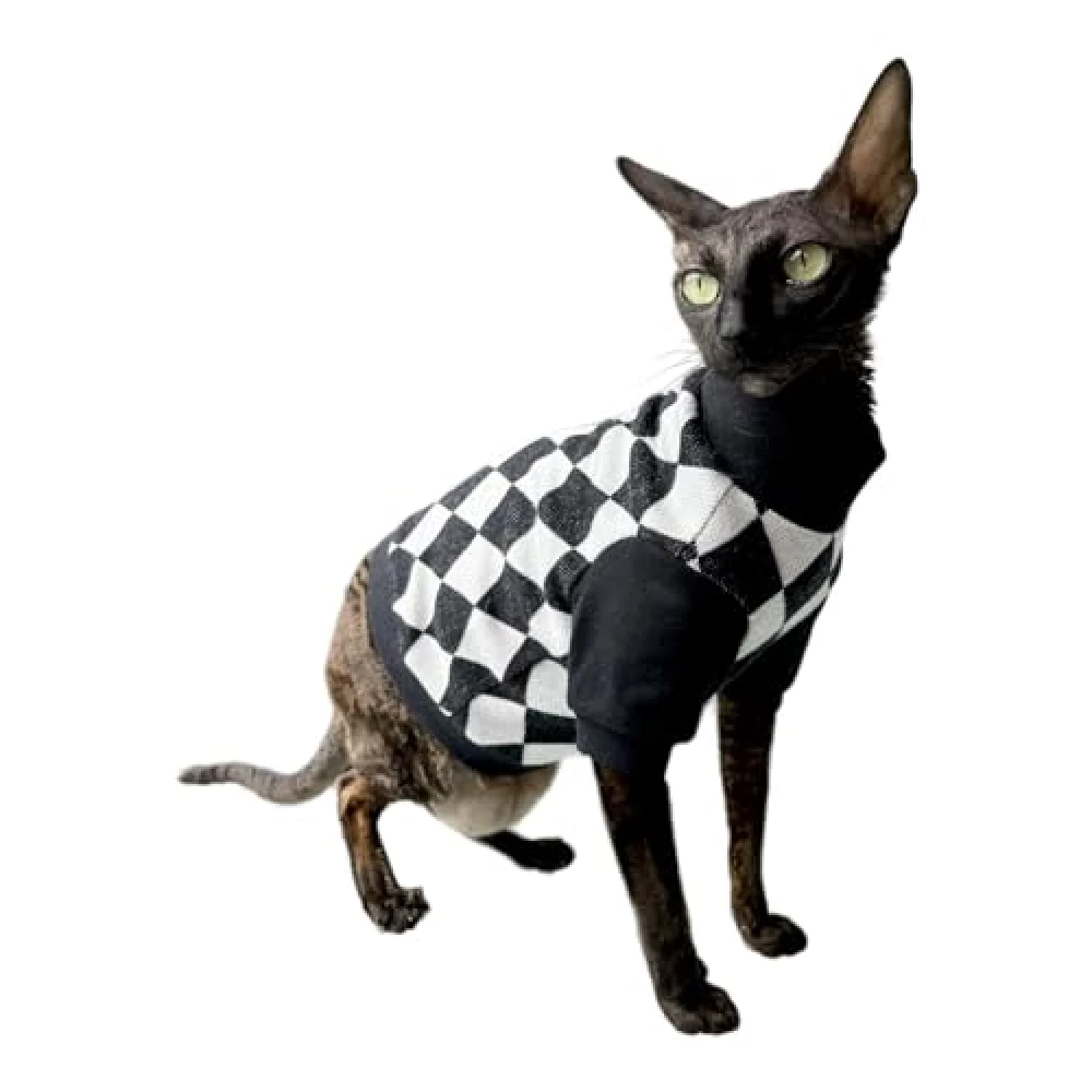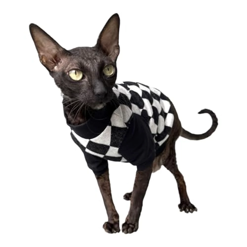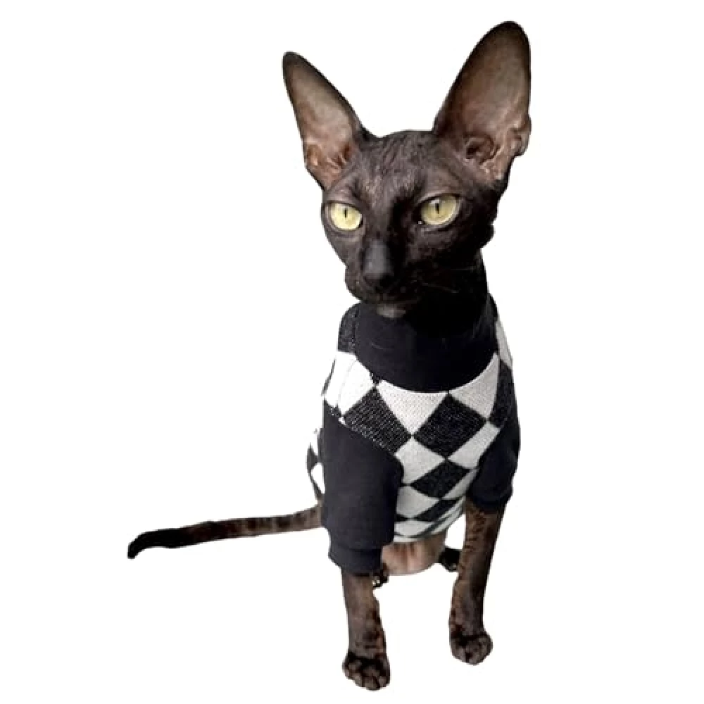 Rollkragen-Pullover für haarlose Katzen – weich, warm und stilvoll. Einfach anzuziehen, maschinenwaschbar und in mehreren Größen erhältlich. Perfekt, um Sphynx & Co. durch den Winter zu begleiten.