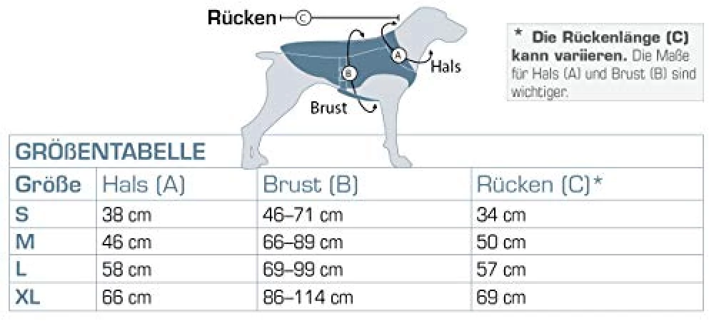 Die Kühlweste ist in verschiedenen Größen erhältlich. Die Variante L passt für mittelgroße bis große Hunde. Für Mini-Wirbelwinde oder sanfte Riesen gibt es meist passende Alternativen – einfach die Maße vergleichen und die richtige Größe wählen.