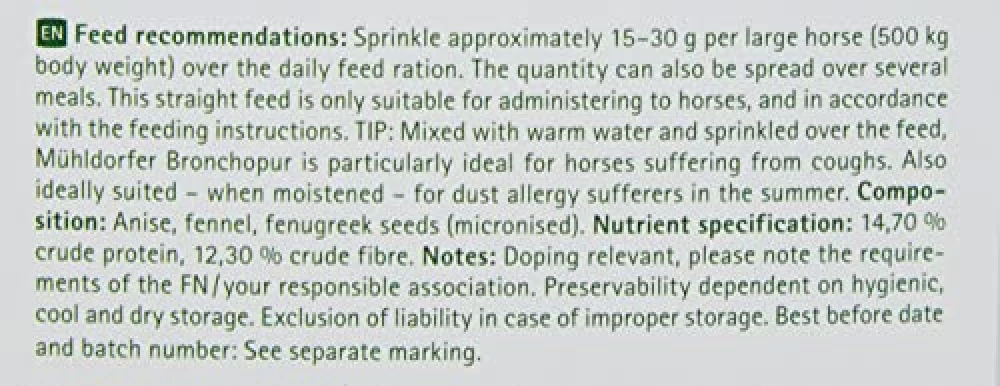 Du kennst das: Die tägliche Futterration ist für viele Pferde heilig – wehe, da schleicht sich etwas Verdächtiges ein! Doch Mühldorfer Bronchopur herbal schafft es, selbst skeptische Feinschmecker zu überzeugen. Einfach über das Futter streuen oder, für die Gourmets unter den Vierbeinern, mit warmem Wasser anrühren und als duftende Kräuterkur servieren. Besonders praktisch: Im Sommer angefeuchtet, ist die Mischung auch für staubempfindliche Pferde ein Segen. Und falls du dich fragst, wie viel davon ins Futter darf – ein Messlöffel (ca. 15 g) reicht für einen Hauch Kräuterfrische im Trog. Die Anwendung ist so unkompliziert, dass sogar Stallmuffel sie hinkriegen![3][5][7]