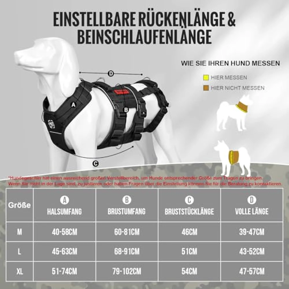 Dein Hund ist ein Athlet, ein Entdecker, ein kleiner Abenteurer. Er liebt es, durch Wälder zu streifen, über Felder zu jagen und neue Gerüche zu erkunden. Dein Geschirr sollte diesen Tatendrang nicht ausbremsen, sondern unterstützen. Viele Geschirre versprechen viel, halten aber wenig. Sie scheuern, verrutschen, schnüren ein oder geben schon nach wenigen Einsätzen den Geist auf. Das OneTigris Hundegeschirr ist für all diejenigen gemacht, die mehr erwarten. Hergestellt aus robustem 1000D Nylon, dem gleichen Material, das auch bei taktischer Ausrüstung verwendet wird, ist dieses Geschirr nahezu unzerstörbar. Ich habe Geschirre kommen und gehen sehen, aber die Langlebigkeit dieses Modells hat mich wirklich beeindruckt. Es hält nicht nur den wildesten Spielen stand, sondern auch extremen Wetterbedingungen und scharfen Ästen.
