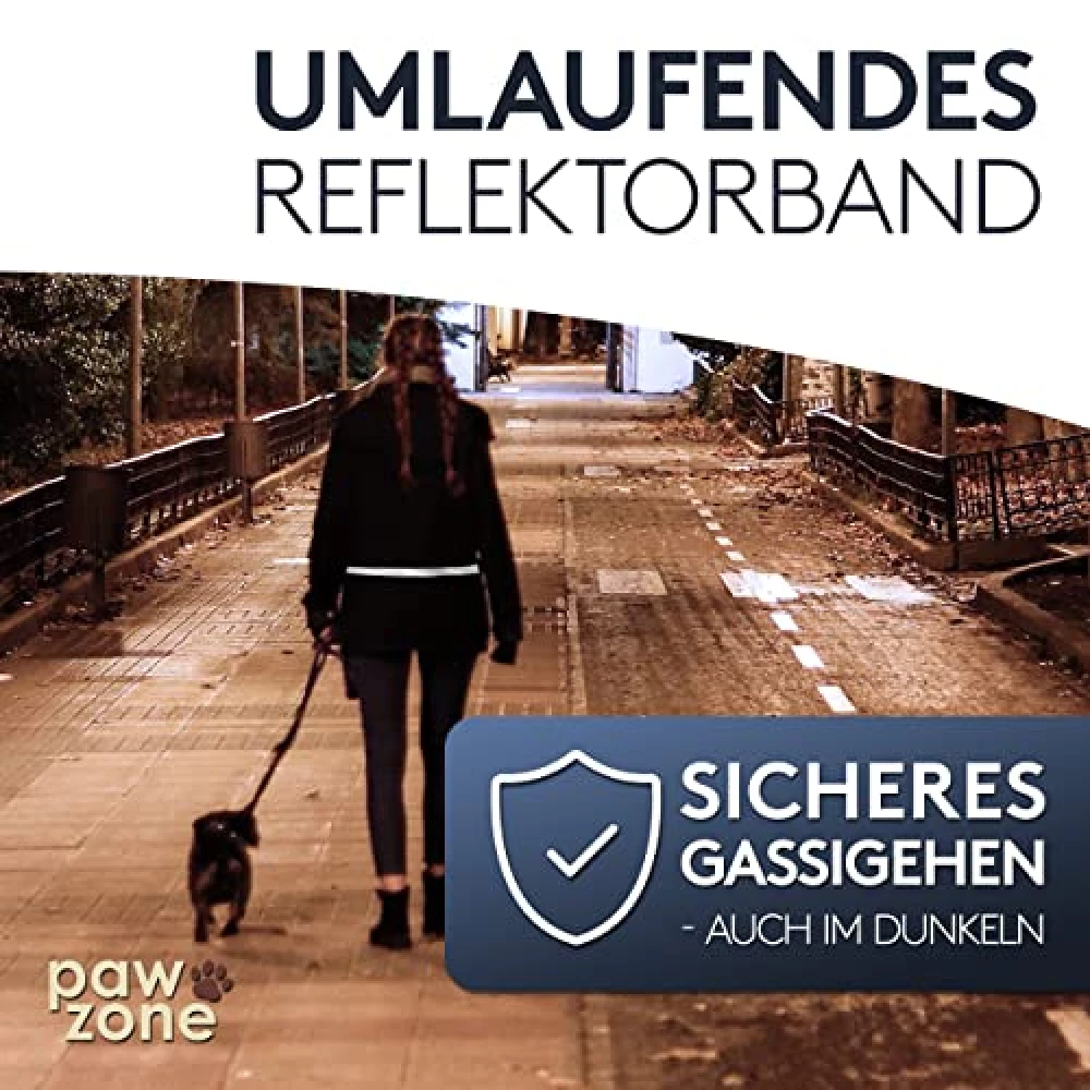 Auf jeden Fall! Das eingearbeitete Reflektorband sorgt dafür, dass du auch im Dunkeln gut sichtbar bist. So kannst du sicher mit deinem Hund spazieren gehen, ohne dir Sorgen machen zu müssen.