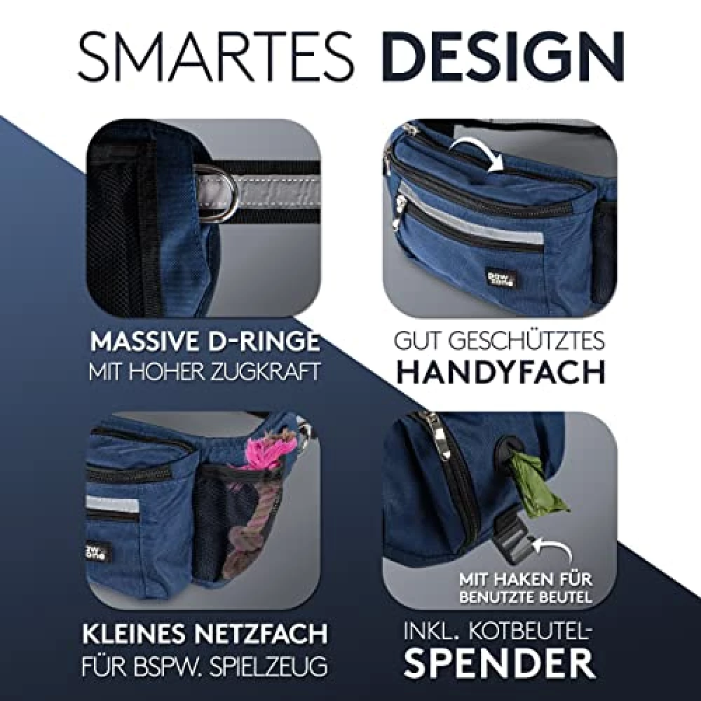 Die Gassi Tasche Hund ist dein perfekter Begleiter für entspannte Spaziergänge. Sie bietet nicht nur Platz für Leckerlis und Spielzeug, sondern auch ein geschütztes Handyfach und ein leuchtendes Reflektorband für mehr Sicherheit. Erlebe unbeschwerte Abenteuer mit deinem Vierbeiner!