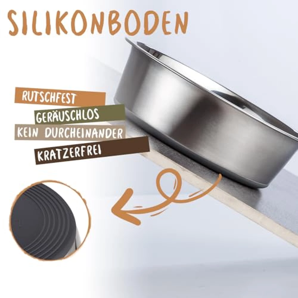Hygiene ist das A und O – nicht nur für Feinschmecker auf vier Pfoten. Der Edelstahl-Napf ist spülmaschinenfest und nimmt weder Gerüche noch Geschmäcker an. Keine Chance für Bakterien oder Keime! Die Silikonunterseite sorgt dafür, dass auch bei der wildesten Fütterung alles an Ort und Stelle bleibt. So wird jede Mahlzeit zum stressfreien Erlebnis – für Hund und Mensch.