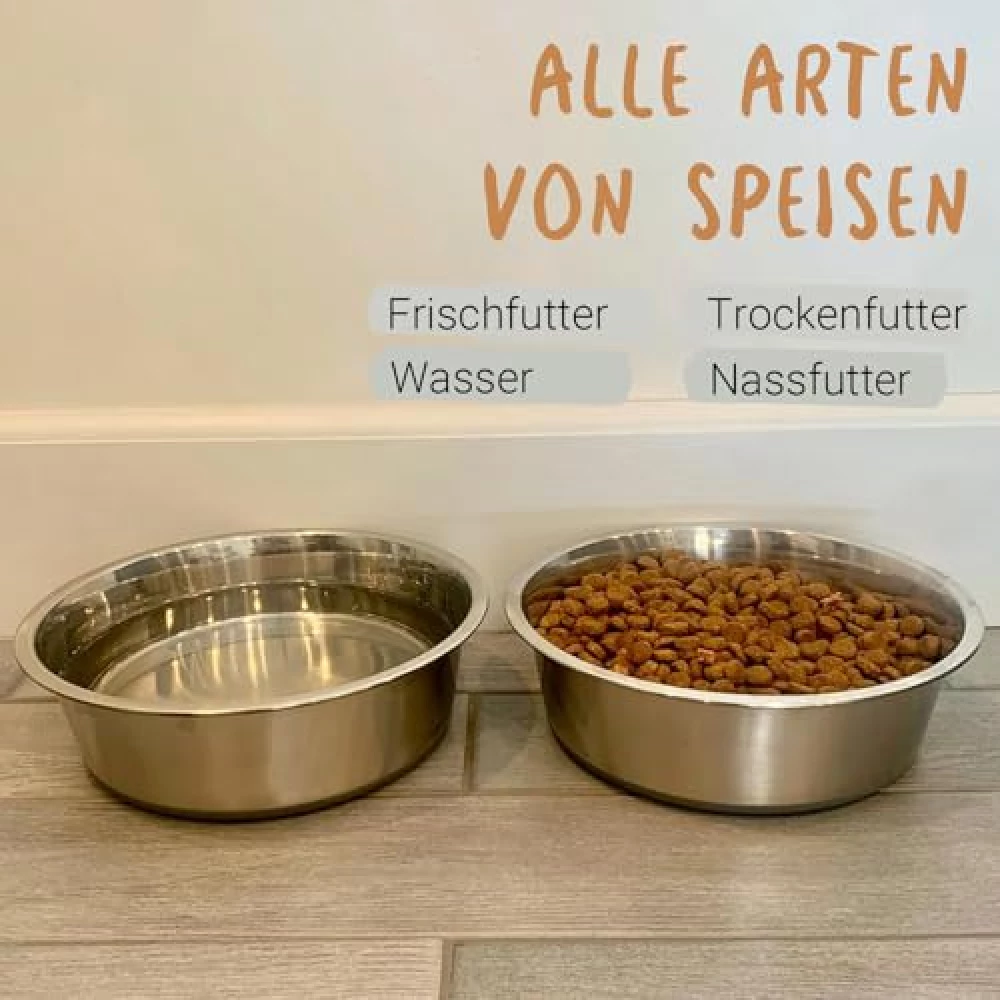 Natürlich! Der Napf ist ein echter Allrounder und fühlt sich mit Wasser genauso wohl wie mit Trocken- oder Nassfutter. Und keine Sorge: Auch nach der wildesten Planscherei bleibt er rostfrei und geschmacksneutral.