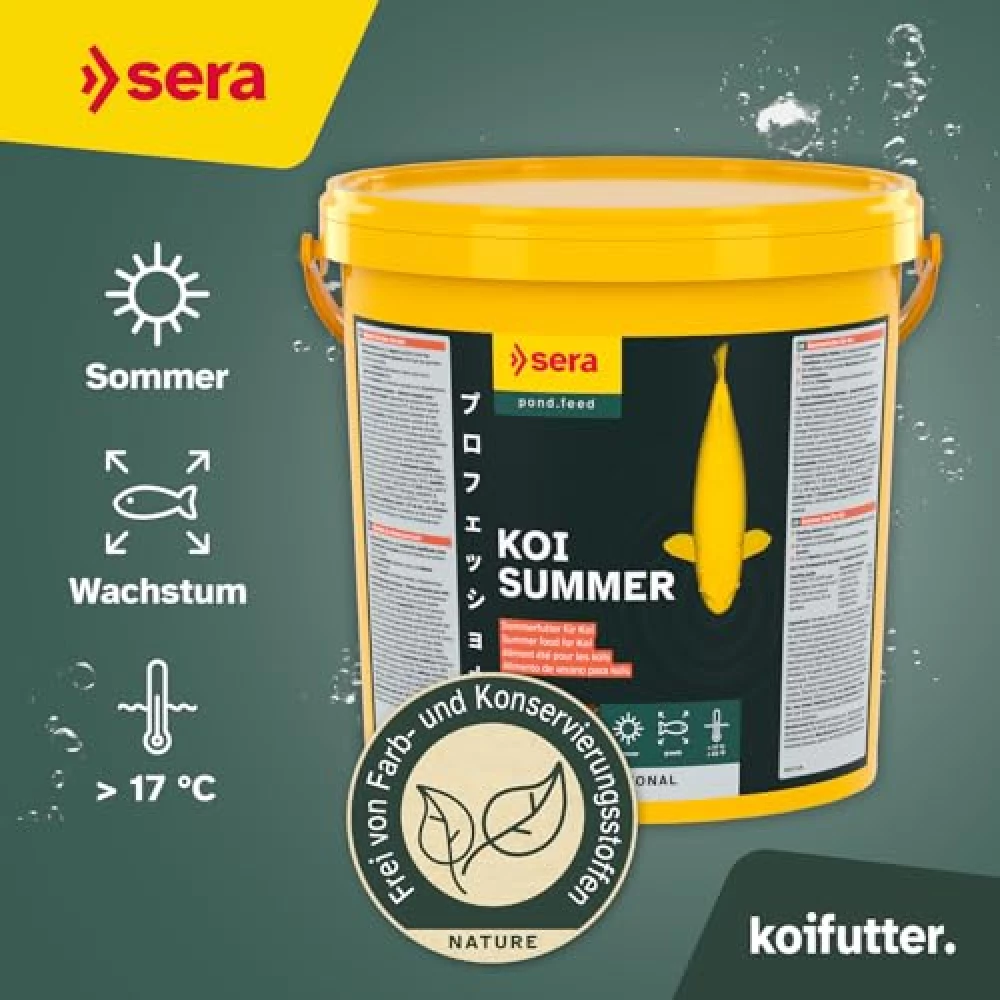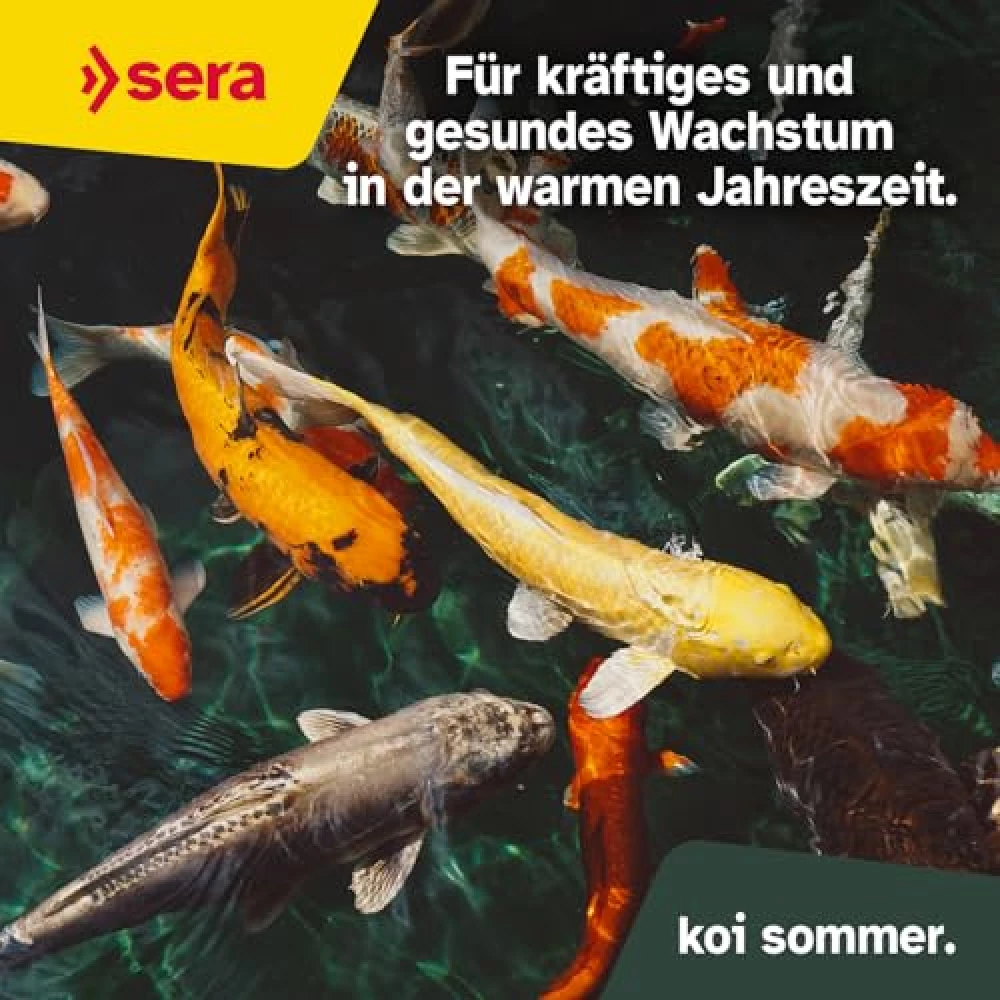 Der Sommer kann kommen: Mit sera KOI Professional Sommerfutter wird dein Teich zur Wellness-Oase für Koi. Energiegeladen, farbenfroh und rundum zufrieden – so geht Fischglück mit einem Augenzwinkern!