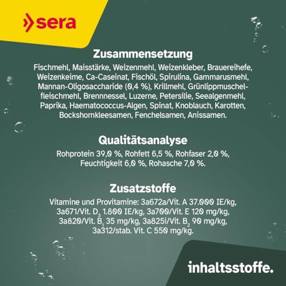 Du willst wissen, was wirklich im Futter steckt? Bei sera wird nichts dem Zufall überlassen. Vom Rohstoff bis zum fertigen Produkt wird alles streng überwacht – direkt im hauseigenen Labor. Das Futter wird in Heinsberg produziert, abgefüllt und blitzschnell an die Händler geliefert. So landet es in Rekordzeit bei dir und deinen Koi. Maximale Frische, lange Haltbarkeit und ein gutes Gefühl inklusive. Kein Wunder, dass Koi-Fans weltweit auf die Qualität von sera schwören – und das Preis-Leistungs-Verhältnis wird von Kunden immer wieder gelobt. Deine Fische werden es dir mit prächtigen Farben und bester Gesundheit danken[2][3].