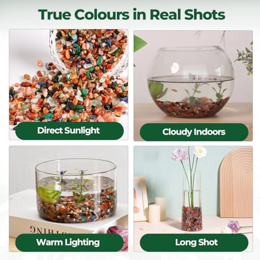 Du hast keine Lust auf ständiges Nachfärben oder mühsames Saubermachen? Kein Problem! Die Kieselsteine sind farbecht und behalten auch nach vielen Gießrunden ihren frischen Look. Einfach vor der ersten Verwendung kurz abspülen – und schon kann das Deko-Abenteuer beginnen. Die Steine sind so pflegeleicht, dass selbst der größte Pflanzenmuffel Freude daran hat. Und wenn du mal wieder Lust auf einen neuen Look hast, lassen sie sich ganz einfach austauschen oder neu arrangieren. So bleibt dein Zuhause immer spannend und lebendig[2][7].