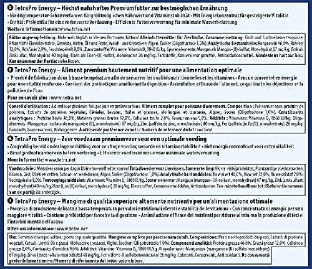 Stell dir vor, deine Fische hätten einen eigenen Sternekoch – und der serviert jeden Tag ein Menü, das nicht nur schmeckt, sondern auch fit und munter macht. Genau das bieten die Tetra PRO Energy Multi-Crisps: Ein Festmahl, das selbst den wählerischsten Guppy zum Schwärmen bringt. Dank des innovativen Niedrigtemperatur-Schonverfahrens bleiben wertvolle Vitamine und Nährstoffe erhalten, als wären sie gerade frisch aus dem Garten gepflückt. Das Ergebnis? Ein Futter, das deine Fische nicht nur satt, sondern auch rundum glücklich macht. Und weil die Crisps so schön an der Wasseroberfläche tanzen, kannst du deinen Lieblingen beim Schlemmen zusehen – fast wie ein Dinner mit Showprogramm!