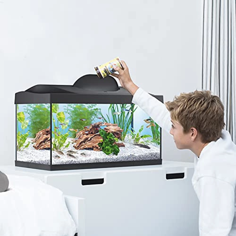 Die Einrichtung dieses Aquariums ist kinderleicht. Alle Komponenten sind genau da, wo du sie brauchst. Keine komplizierten Schläuche, keine rätselhaften Bauteile. Nur ein bisschen Wasser, ein paar Dekosteine und du bist bereit.