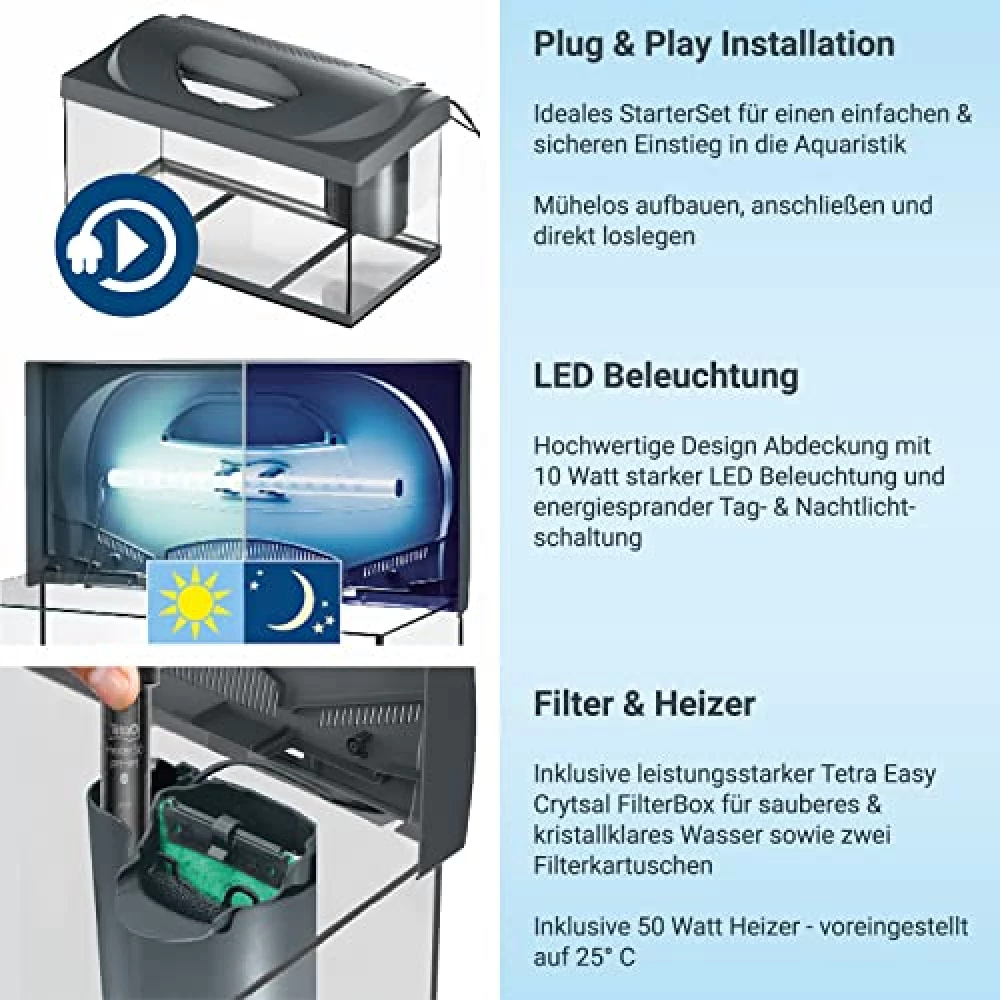 Willkommen in der gläsernen Welt voller Fantasie, Farben und Flossenkunst! Mit dem Tetra Starter Line 54 L Aquarium Komplettset wird dein Wohnzimmer zum kleinen Ozeanparadies. Ideal für alle, die das Abenteuer Aquaristik entdecken wollen, ohne gleich in die Tiefsee abzutauchen.