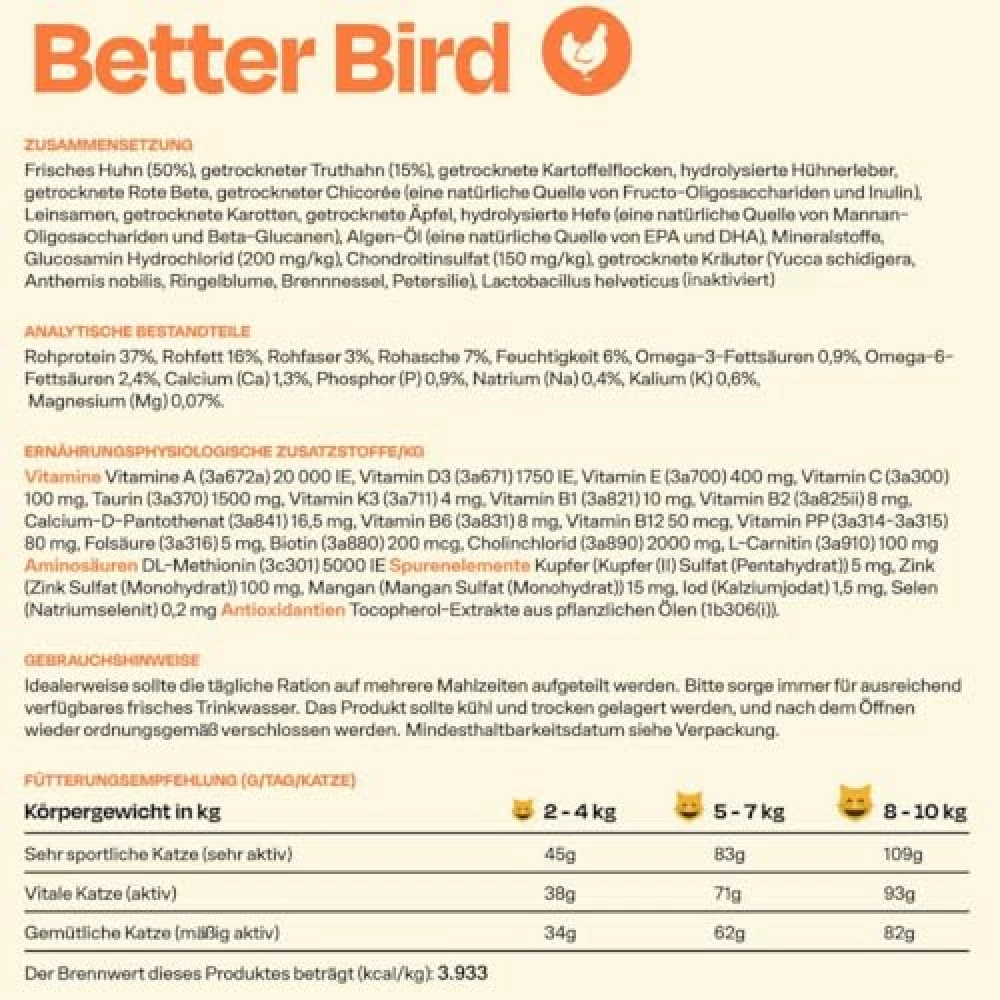 Das Futter wird gut vertragen, da es aus frischen Zutaten besteht und keine künstlichen Zusätze enthält. Deine Katze wird es lieben!