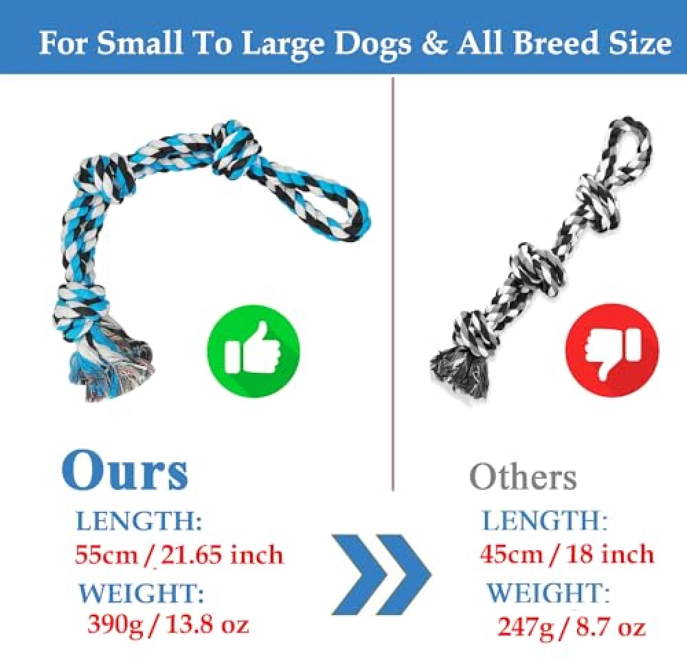 Für kräftige Welpen, die gern zerren und kauen, ist das Seil ideal. Achte aber darauf, dass keine losen Fäden entstehen und lass deinen kleinen Rabauken nicht unbeaufsichtigt spielen.
