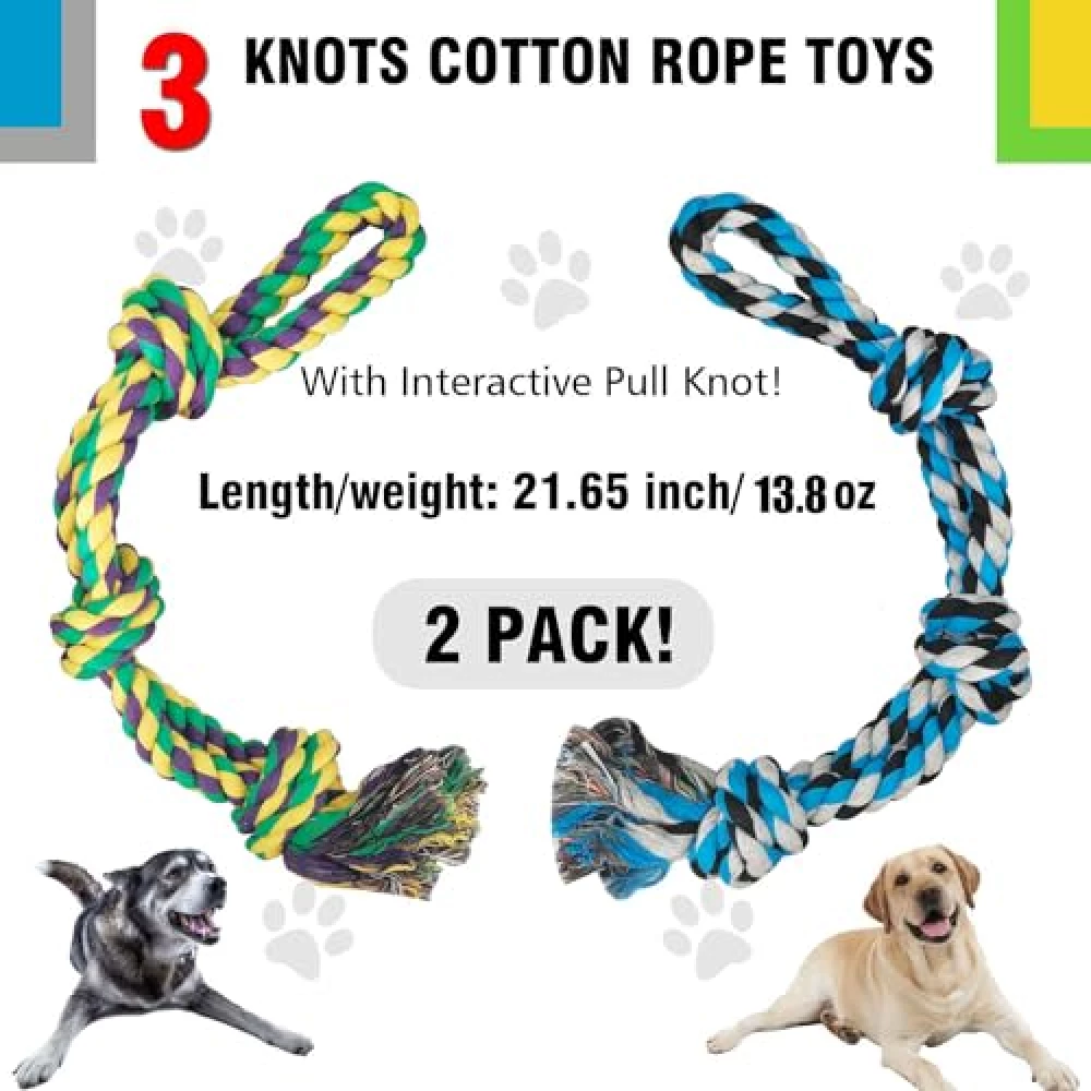Dieses Modell kommt als farbenfrohes Duo mit drei Knoten und 55 cm Länge. Für kleinere Hunde gibt es oft spezielle Varianten – hier lohnt sich ein Blick ins Sortiment.