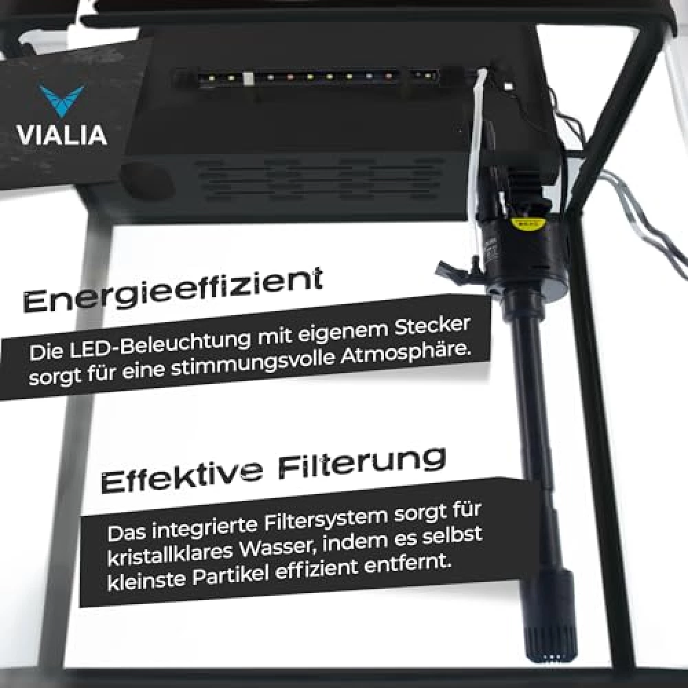 Ob als Geschenk für Aquaristik-Einsteiger, als Ruhepol im hektischen Alltag oder als stylisches Upgrade für dein Zuhause – das VIALIA Aquarium Komplettset bringt Leben in jeden Raum, ohne dass du gleich eine Arche Noah bauen musst.
