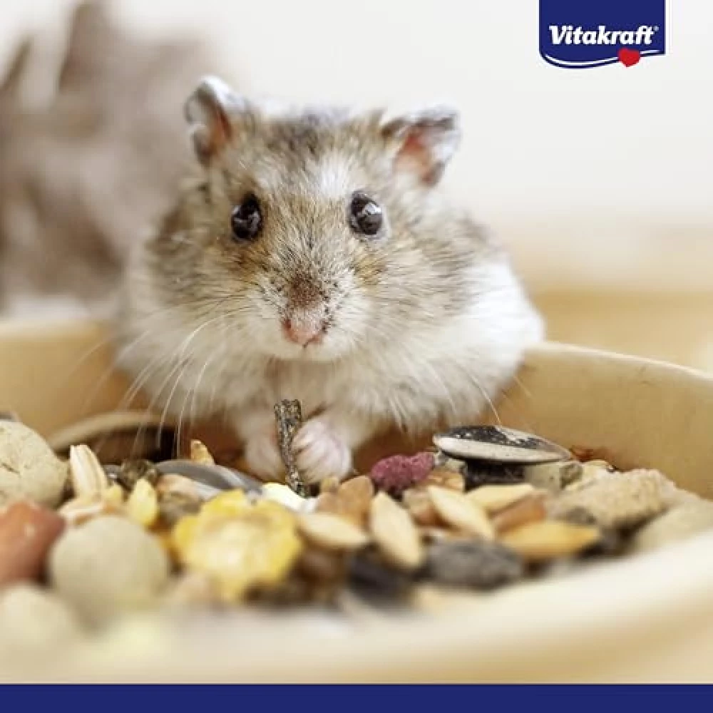 Ob Goldhamster, Zwerghamster oder Teddyhamster – diese Mischung ist auf die Bedürfnisse aller Hamsterarten abgestimmt. Jeder darf sich eingeladen fühlen, das Buffet zu plündern.