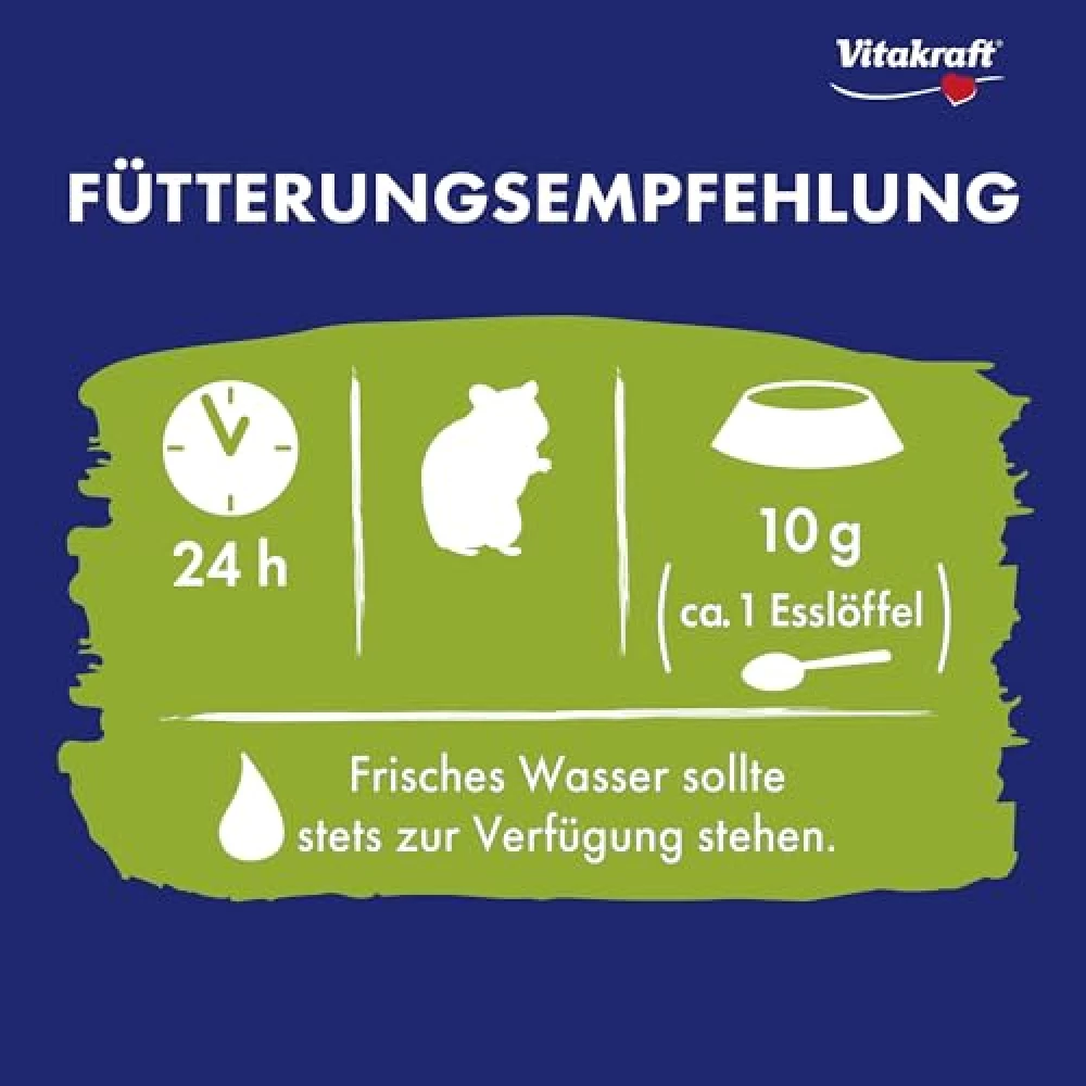 Jeder Hamster ist anders – der eine liebt es, sich durch den Napf zu wühlen, der andere bevorzugt gezielte Häppchenjagd. Dieses Futter ist so konzipiert, dass es allen Vorlieben gerecht wird. Die ausgewogene Mischung bietet Abwechslung und animiert zum natürlichen Futtersuchspiel, das Hamster so sehr lieben. Auch in Mehrhamster-Haushalten (sofern getrennte Gehege vorhanden sind!) sorgt die Mischung für Harmonie: Kein Gezanke um die besten Körner, denn es ist für jeden Geschmack etwas dabei. Und falls du Wert auf Design legst: Die bunten Kräuter und Körner machen auch optisch ordentlich was her – fast zu schön, um sie zu verstecken. Komfort für dich gibt’s obendrauf: Kein lästiges Sortieren, kein Rätselraten um Zusatzstoffe. Einfach öffnen, einstreuen und beobachten, wie dein Hamster zum Gourmet wird. Die Pflege ist ebenfalls ein Kinderspiel – dank der natürlichen Zutaten bleibt das Gehege länger frisch und du hast mehr Zeit für die wirklich wichtigen Dinge: Hamster beobachten, schmunzeln und genießen.