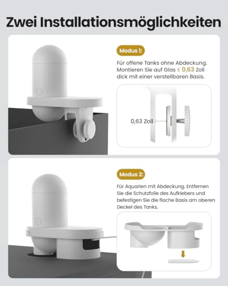 Die Kamera lässt sich mit Nano Non-Tracing Kleber bis zu 30 Mal befestigen und wieder abnehmen. So findest du immer den perfekten Blickwinkel – und falls deine Fische mal wieder umziehen, zieht die Kamera einfach mit.
