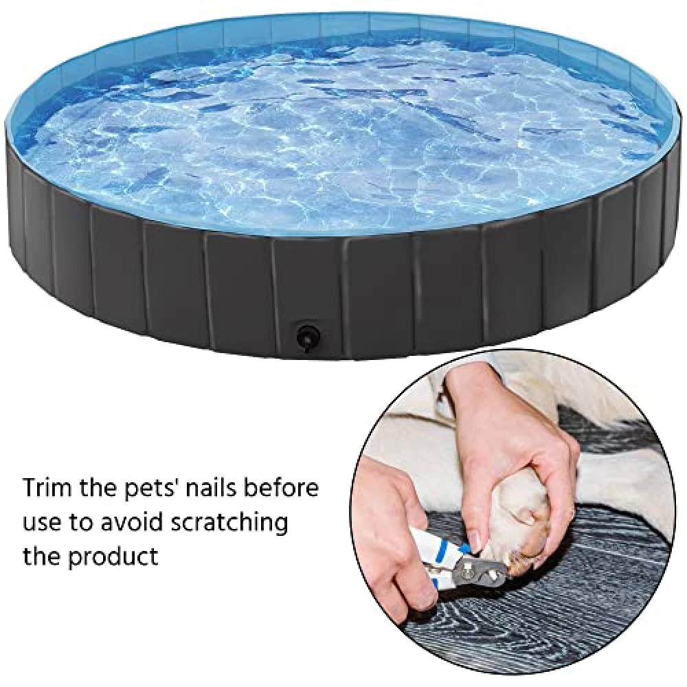 Der Pool besteht aus widerstandsfähigem PVC und hält auch wilden Sprüngen stand. Ein kleiner Tipp: Wenn die Krallen frisch gestutzt sind, bleibt der Pool länger in Topform.