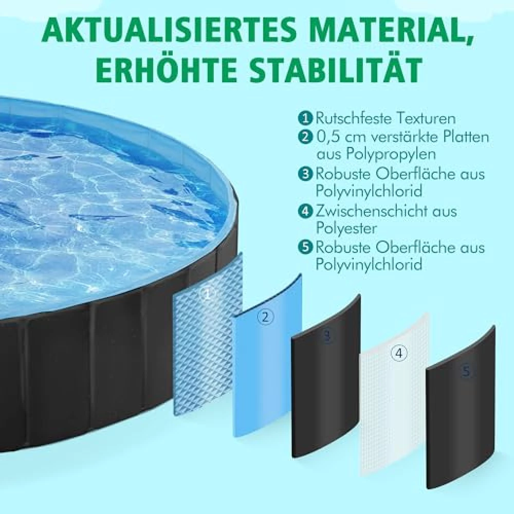 Wasser marsch – aber bitte ohne Überschwemmung im Garten! Die robuste PVC-Abdeckung hält, was sie verspricht: kein Tropfen geht verloren, und das Planschvergnügen bleibt dort, wo es hingehört. Damit die wilde Meute beim Spielen nicht ins Schlittern gerät, sorgen rutschfeste Faserplatten für festen Stand. Egal, ob dein Hund Anlauf nimmt oder deine Katze sich vorsichtig herantastet – hier bleibt jeder auf dem Teppich, pardon, im Pool. Und wenn der Sommer mal Pause macht? Dann wird der Pool einfach zum Sandkasten oder zum Indoor-Bällebad umfunktioniert. Vielseitiger geht’s kaum!